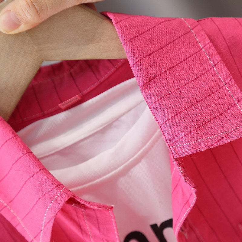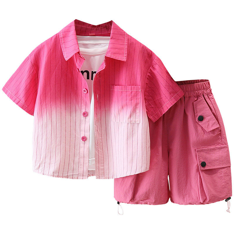 男童渐变色衬衫套装帅气儿童夏季短袖条纹衬衣潮酷男孩夏装三件套