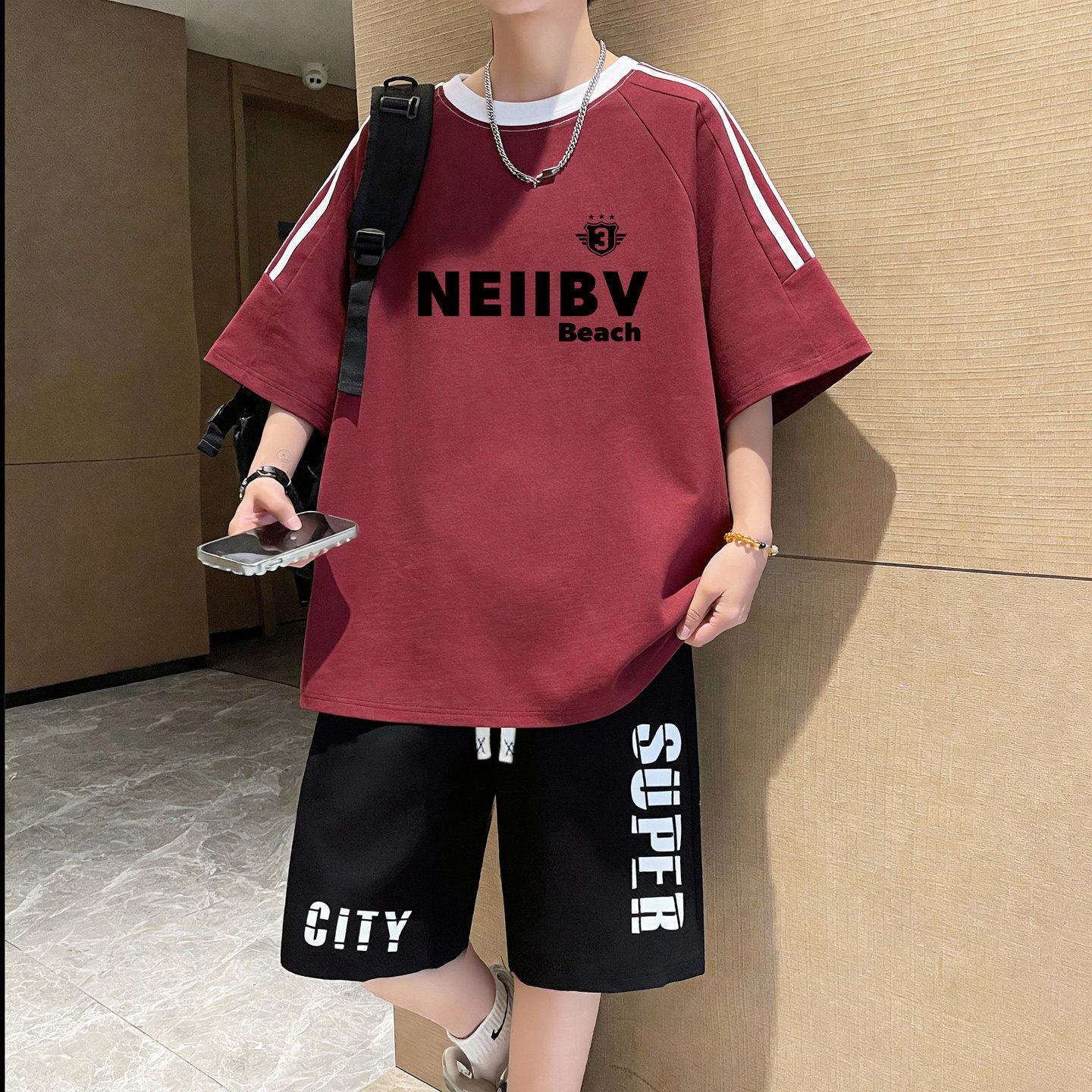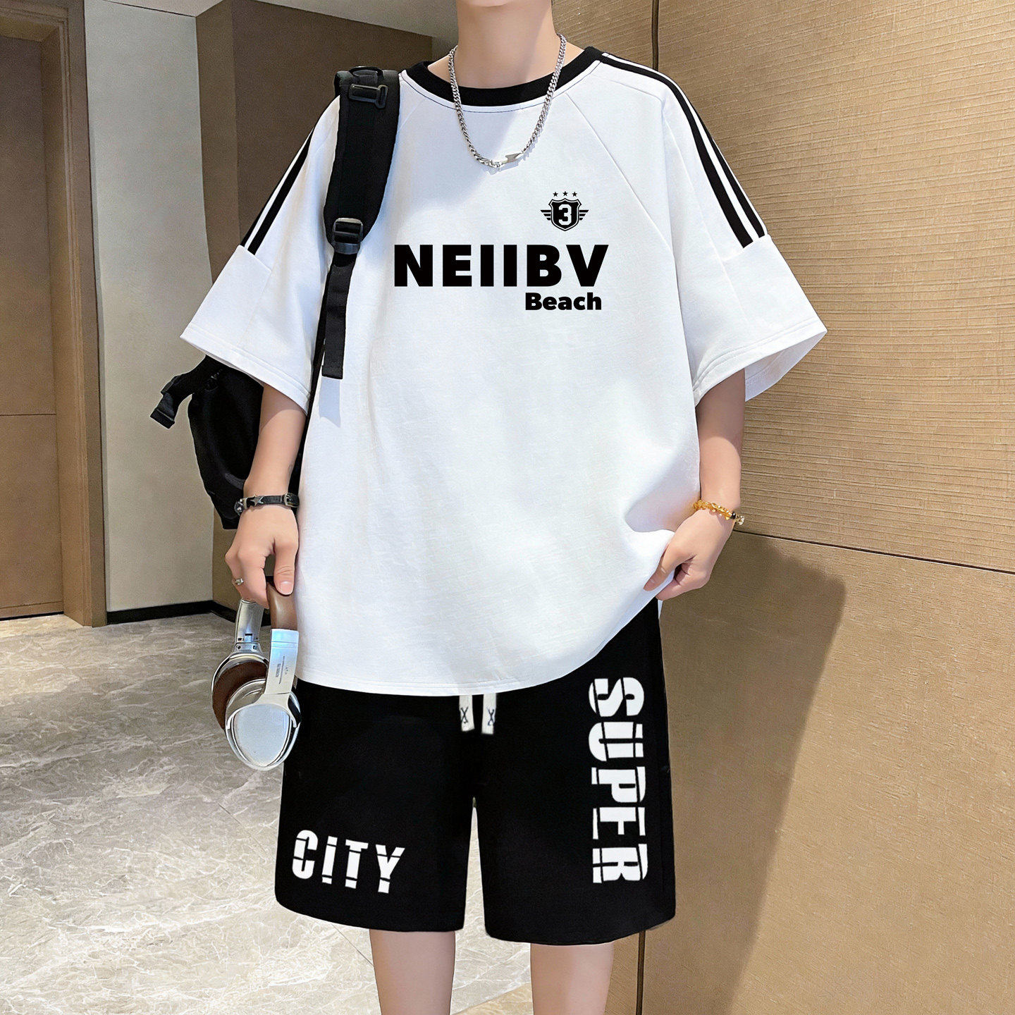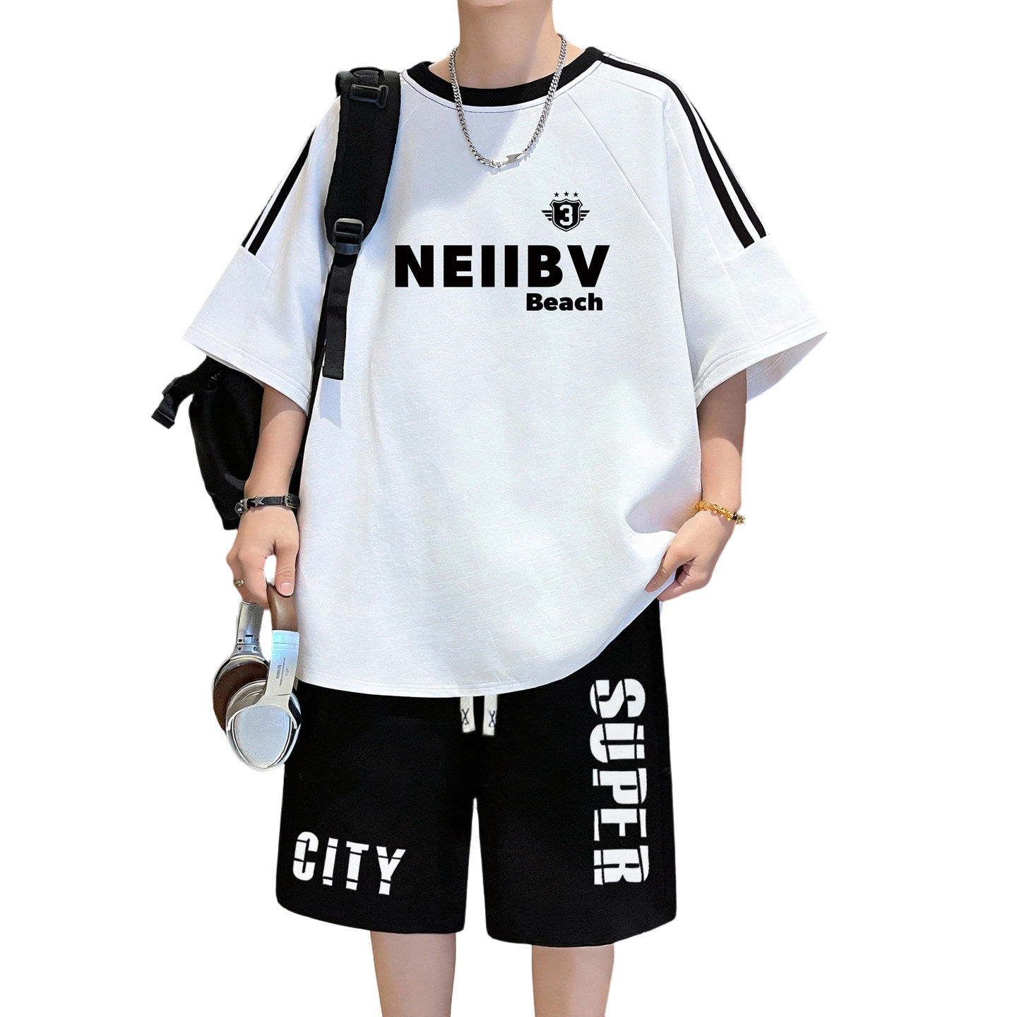 青少年夏季套装男孩初中高中学生纯棉短袖t恤大童男装帅气运动服