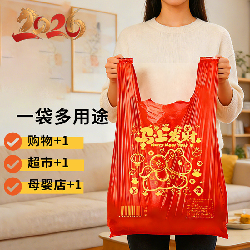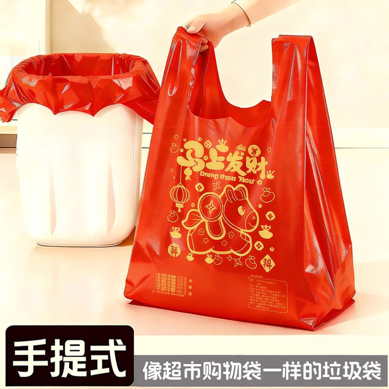 2026垃圾袋家用加厚手提式用马年免撕大号超厚红色塑料袋特厚年货