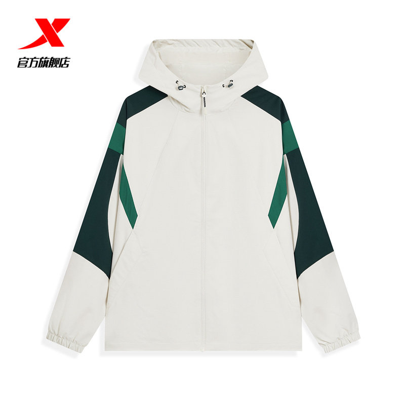 特步运动风衣男士春季新款户外运动外套休闲连帽夹克官方旗舰店