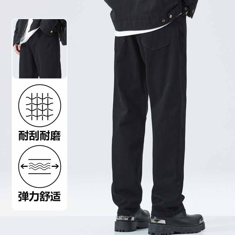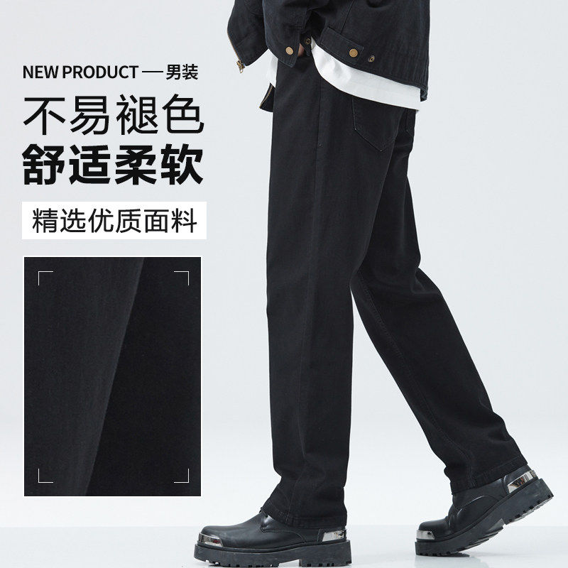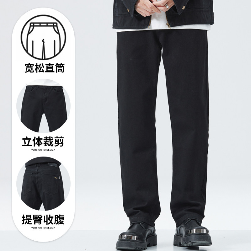 罗蒙黑色牛仔裤男士2026新款宽松直筒裤弹力潮牌春秋季休闲长裤子