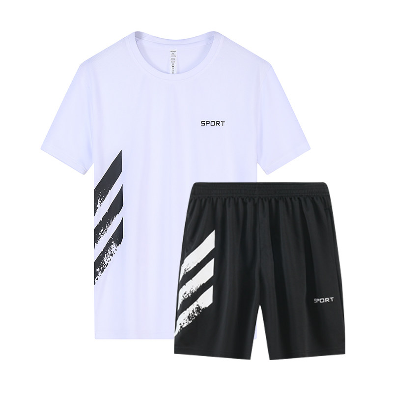 运动服套装短袖夏季速干透气T恤晨跑步篮球训练短裤健身房衣服男