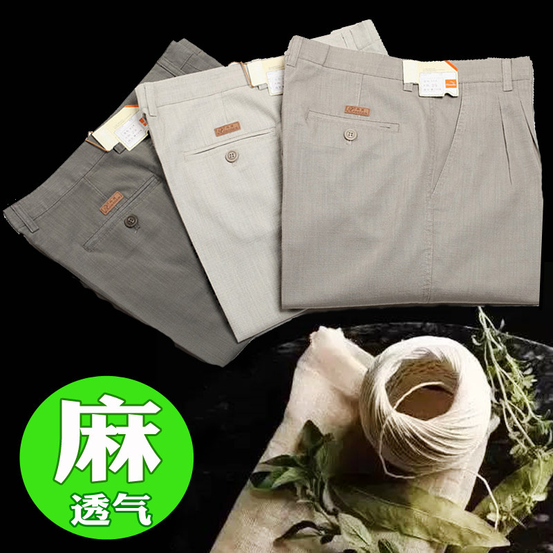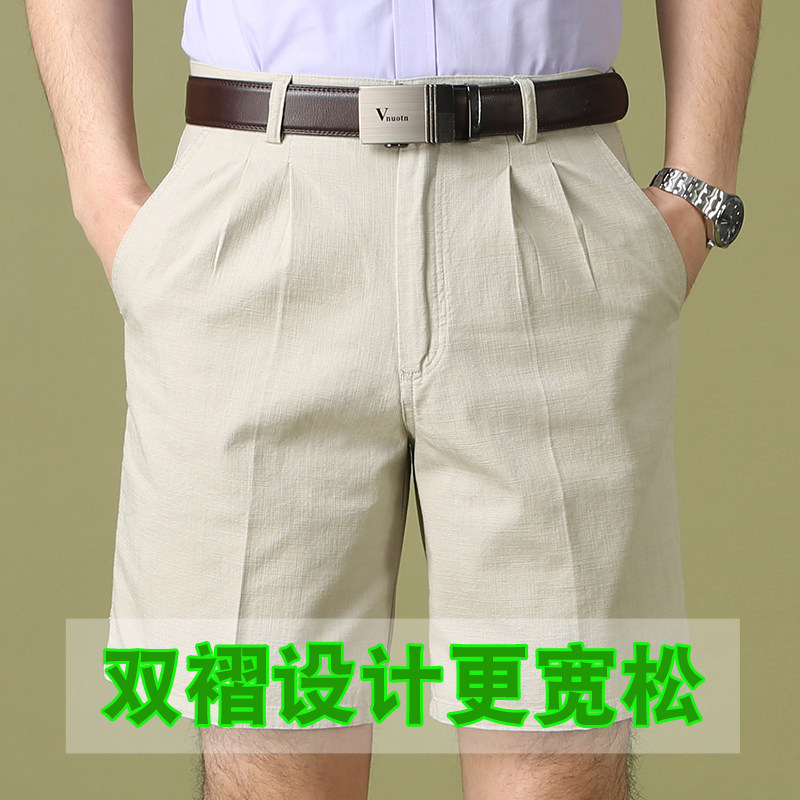 亚麻短裤男夏季薄款中老年男士外穿冰丝感休闲棉麻西装五分裤男款