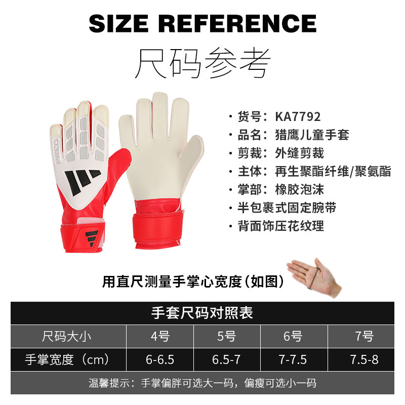 酷锐足球阿迪达斯猎鹰比赛训练足球儿童守门员门将手套男女KA7792