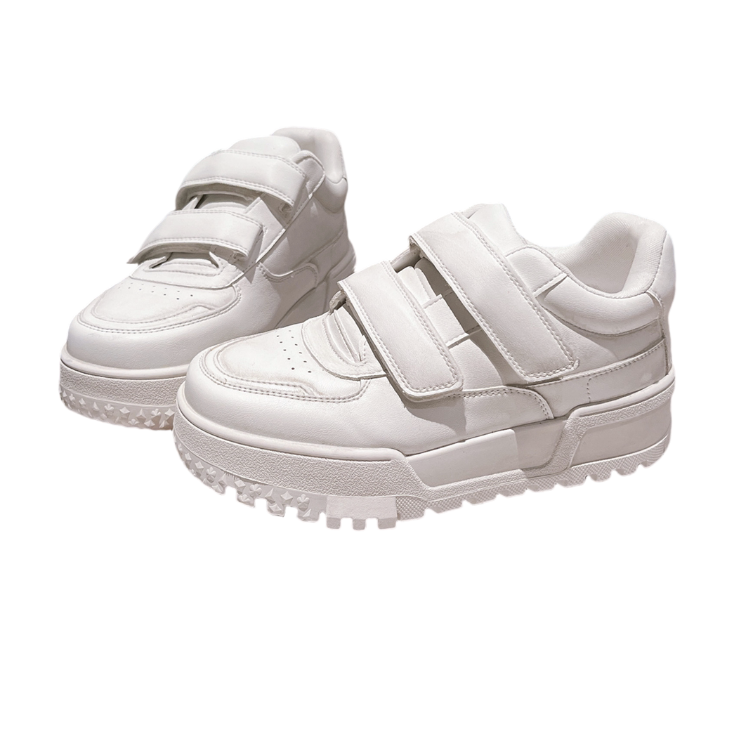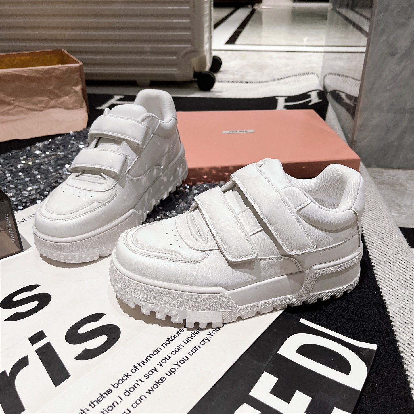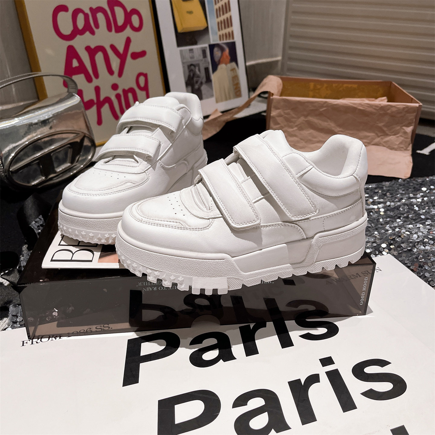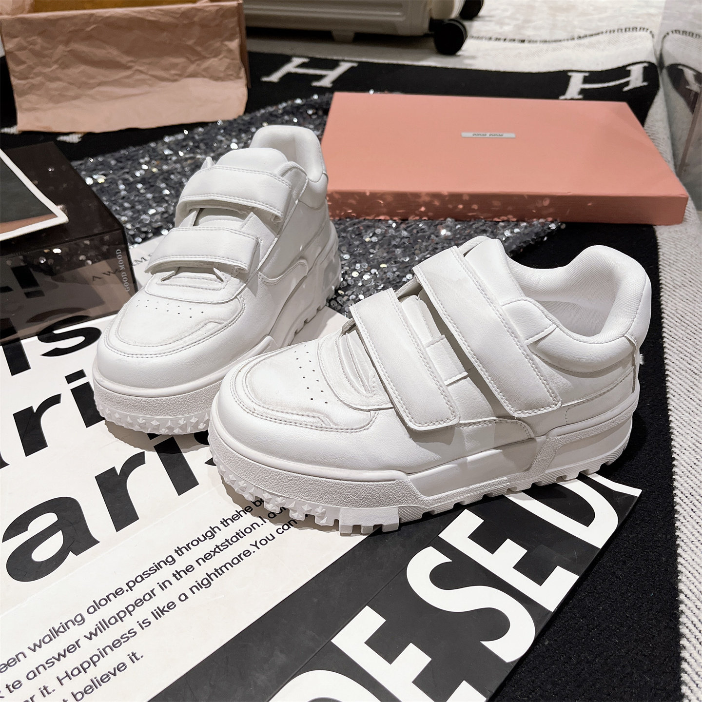 真皮版~欧货小胖丁大头魔术贴厚底松糕擦色小脏鞋脏脏小白鞋女鞋