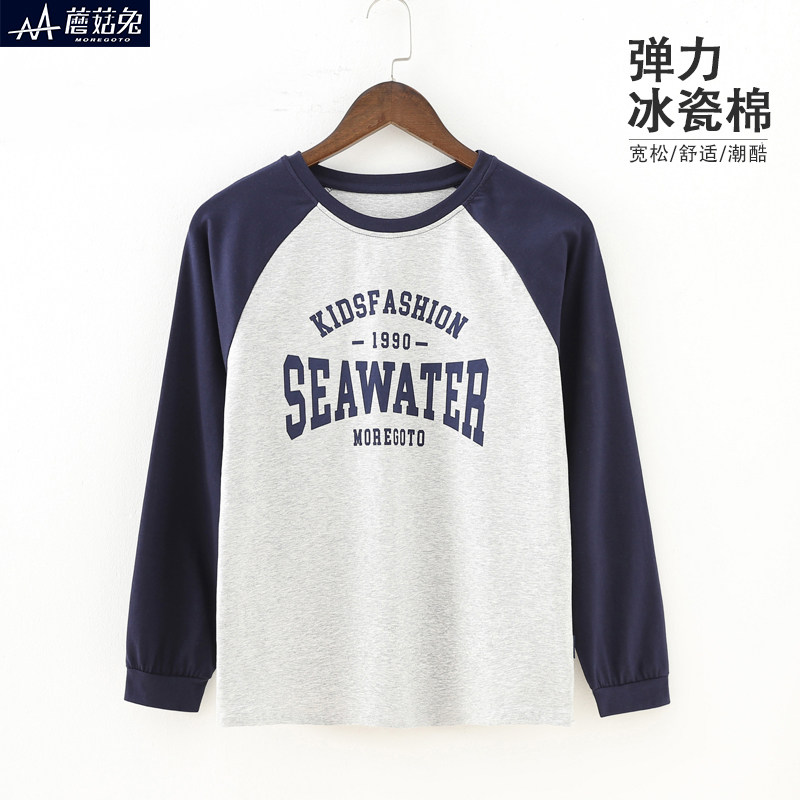 胖男童长袖T恤春秋薄款宽松加肥加大青少年初中生男孩秋季打底衫