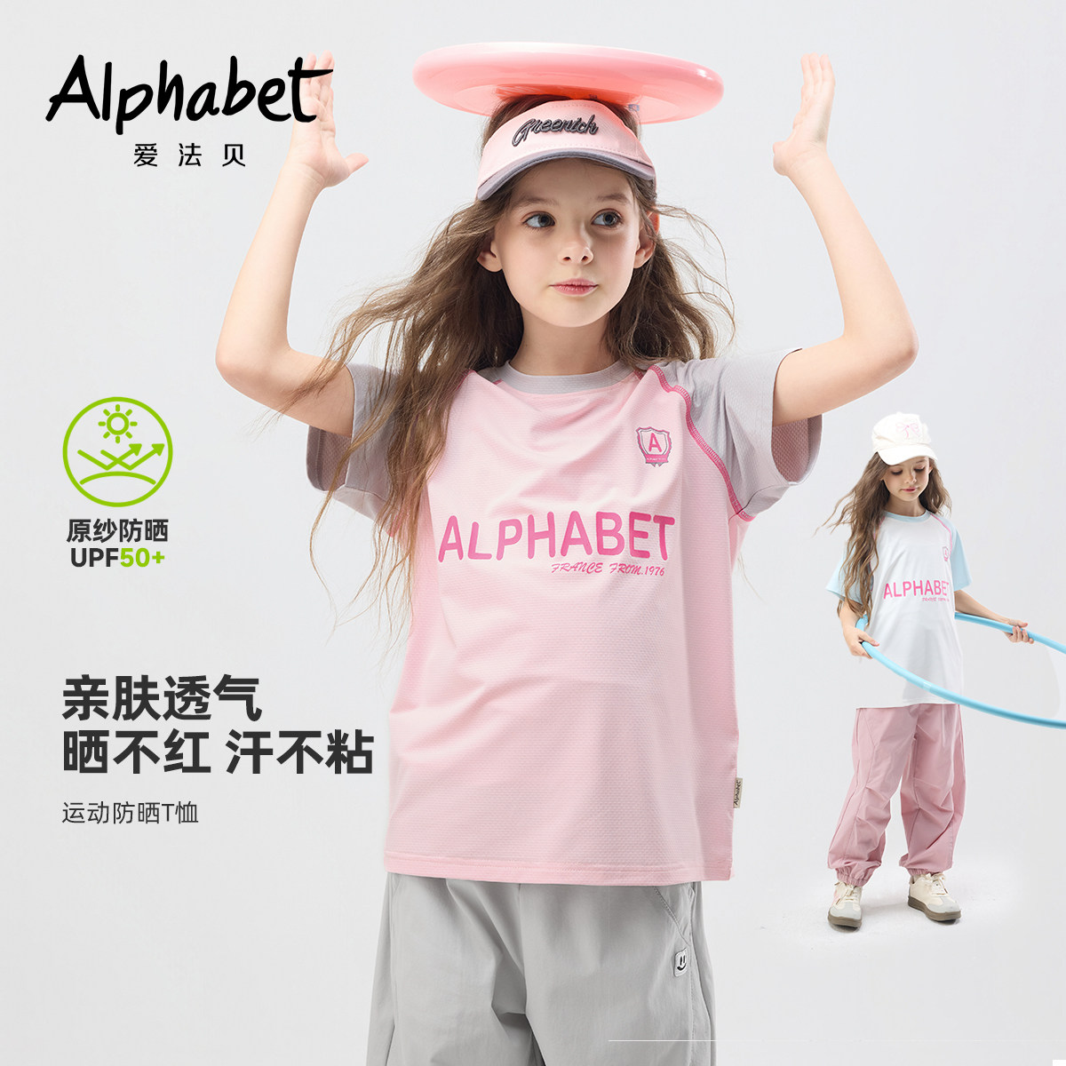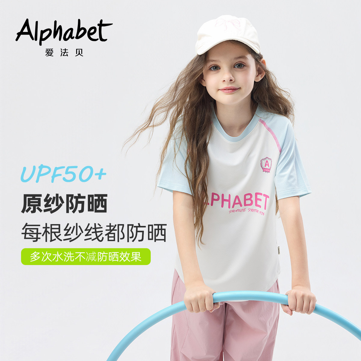 【原纱防晒】爱法贝夏款男女童运动上衣儿童短袖t恤中大童打底衫