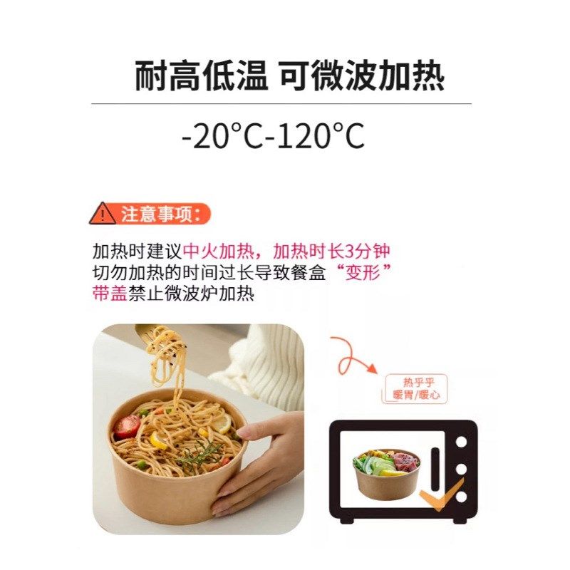 牛皮纸打包盒碗圆形食品级一次性外卖餐I饭盒带盖子不漏汤一件起
