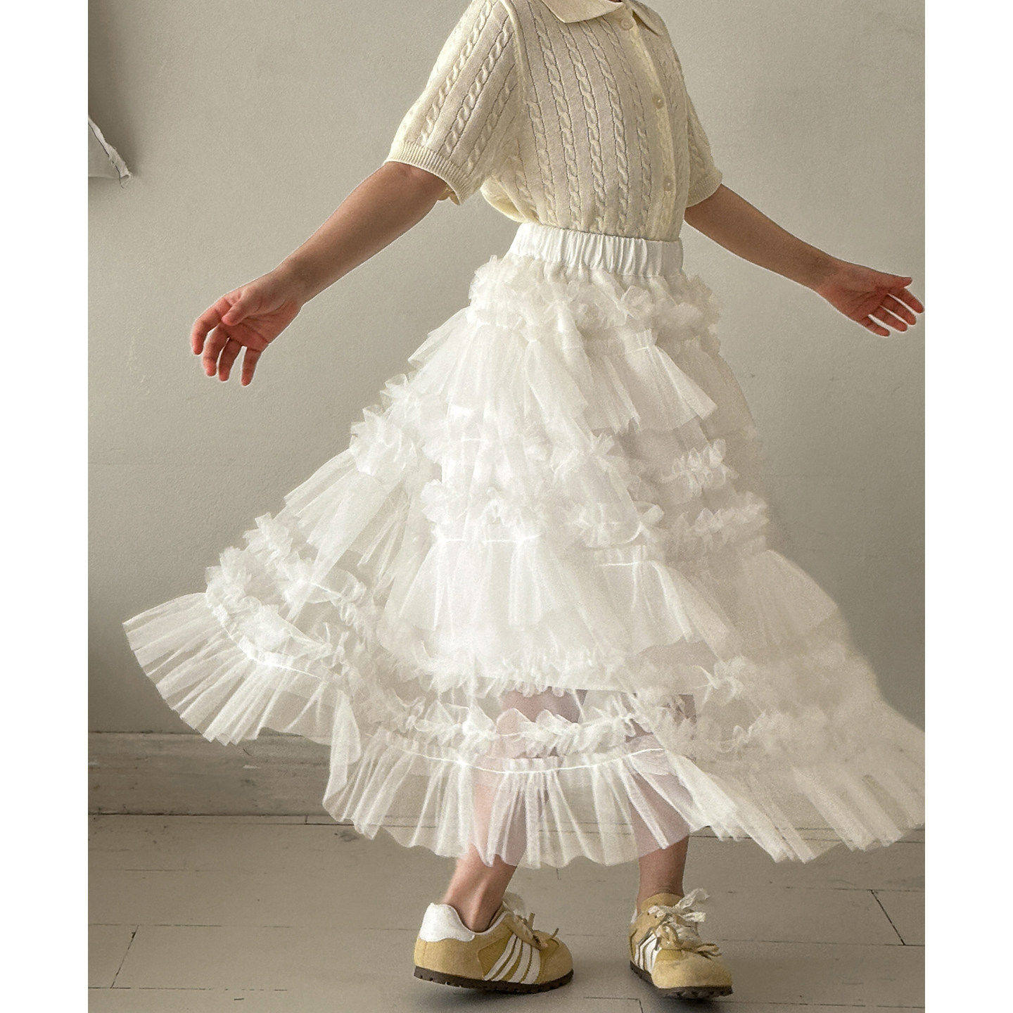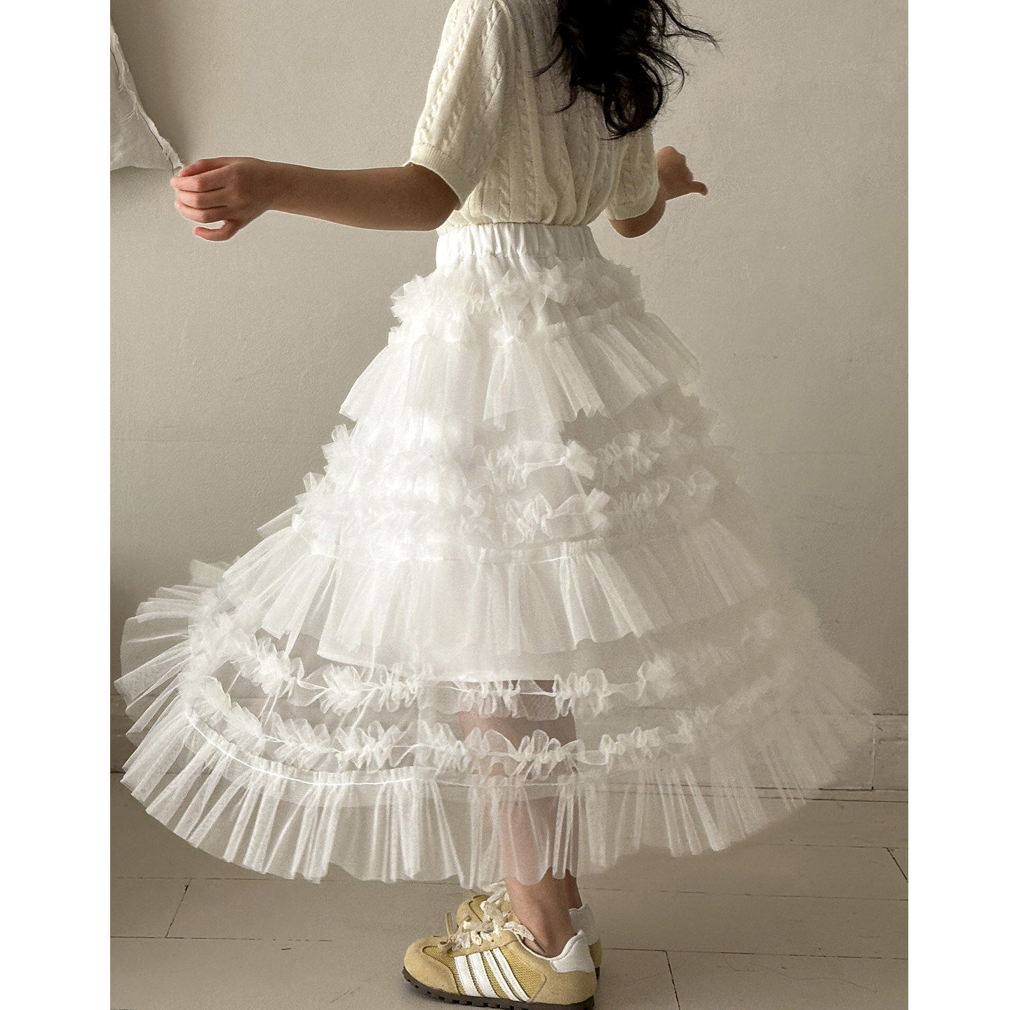 女童半身裙春装新款女大童春季巨好看白色网纱蛋糕公主裙儿童裙子