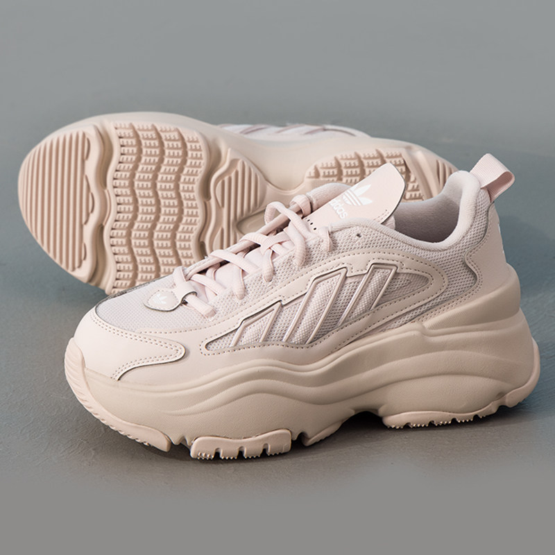 阿迪达斯三叶草OZGAIAW老爹鞋女款白色网面厚底增高运动休闲鞋
