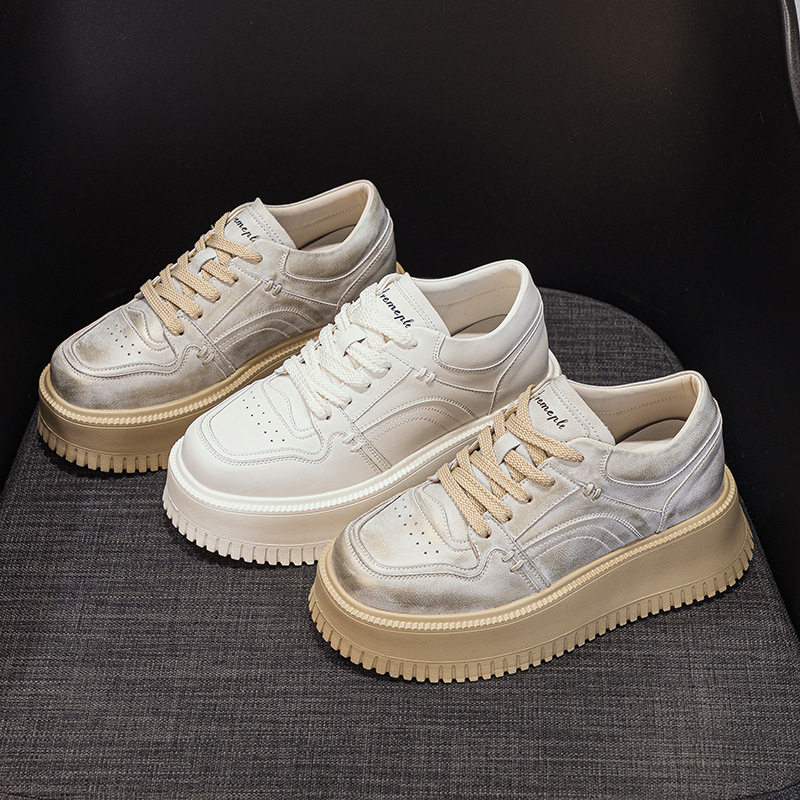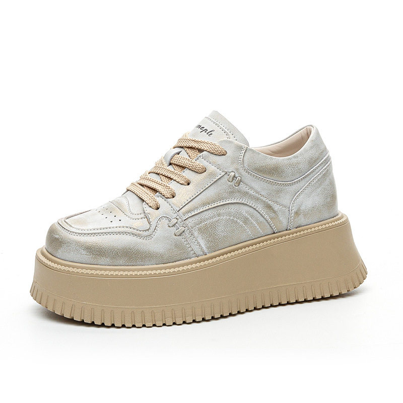 真皮2026春季新款厚底休闲板鞋松糕鞋女小个子小白鞋内增高小码33