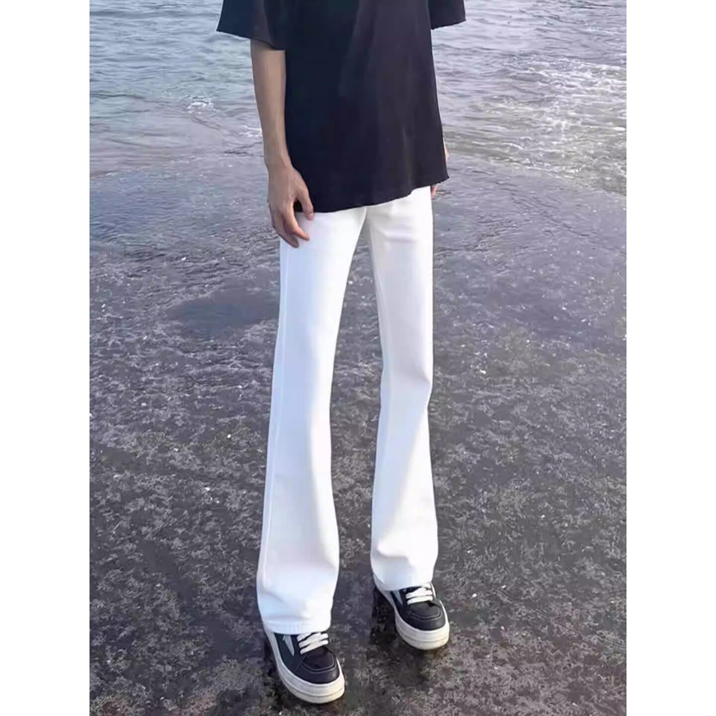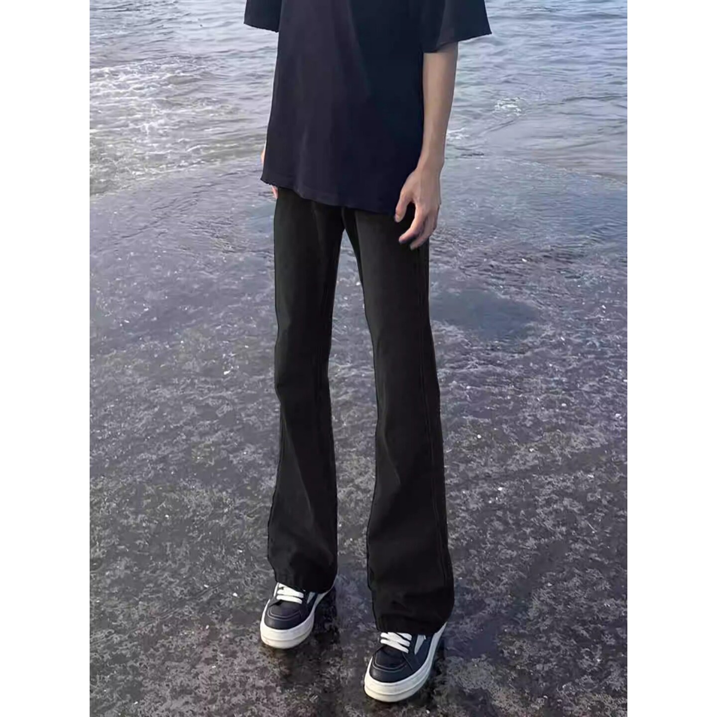 复古蓝中腰牛仔裤男款痞帅cleanfit裤子美式高街直筒显瘦微喇长裤