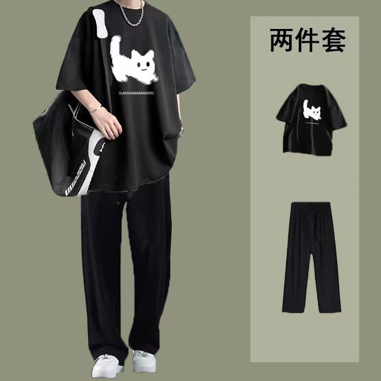 青少年夏季套装新款短袖T恤男潮流帅气宽松初高中学生衣服男装12
