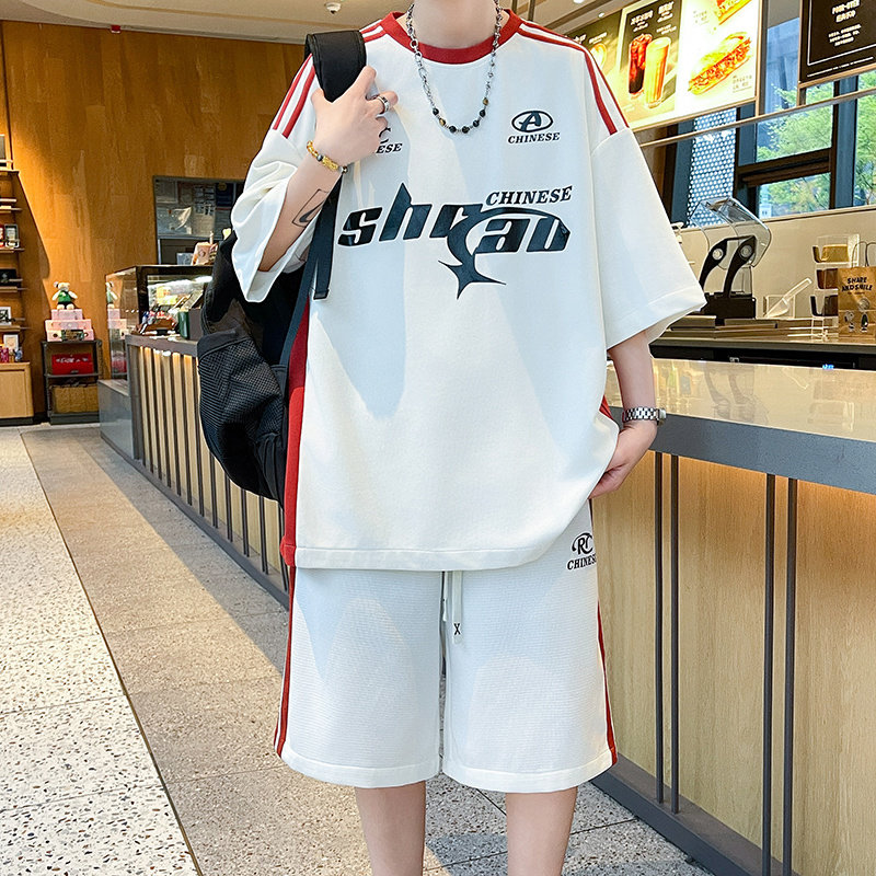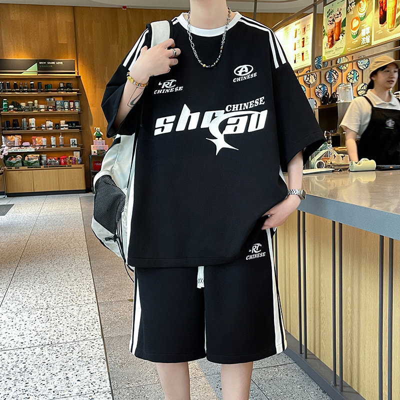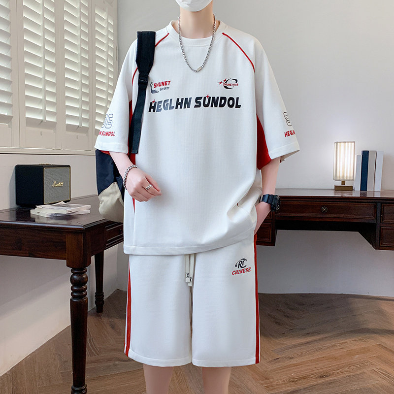冰丝短袖t恤男孩夏季新款青少年初高中学生套装大童运动篮球衣服