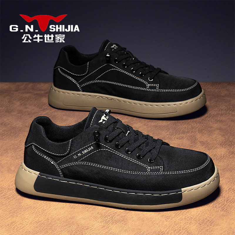 公牛世家鞋子男鞋夏季透气薄款一脚蹬帆布版鞋百搭潮流运动休闲鞋