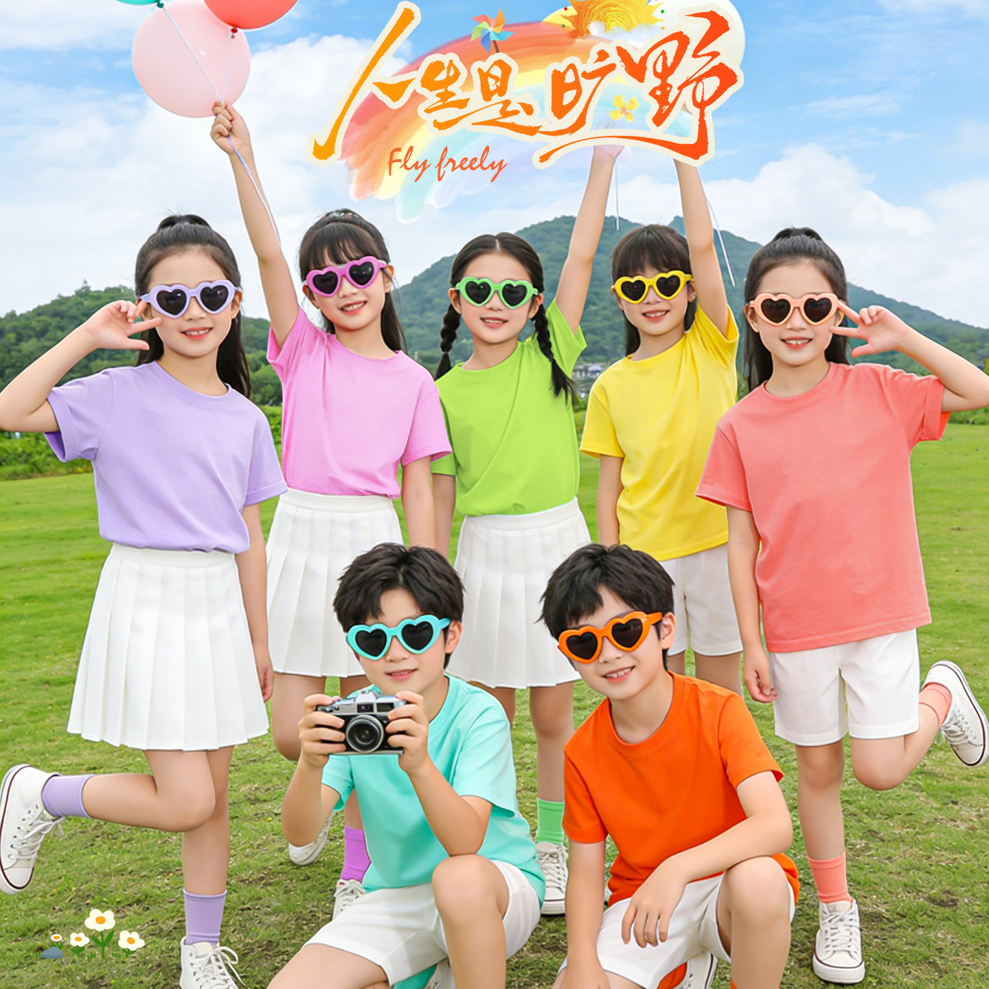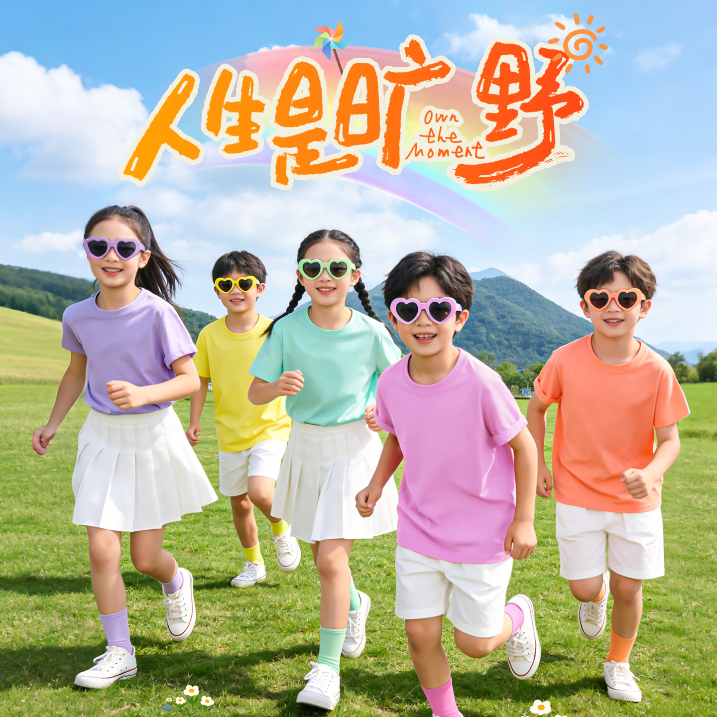 糖果彩色儿童T恤小学生表演服装运动会班服幼儿园多巴胺亲子套装