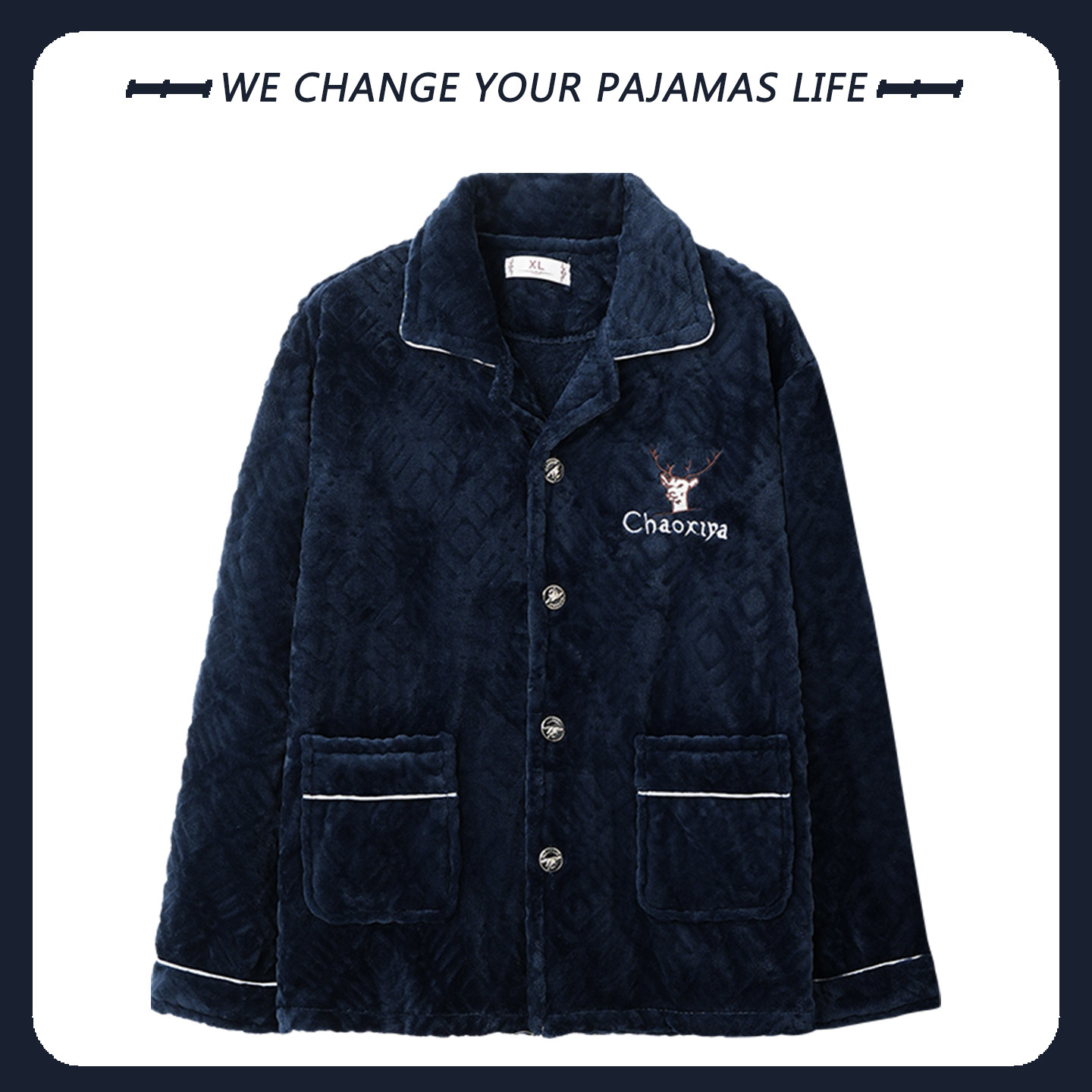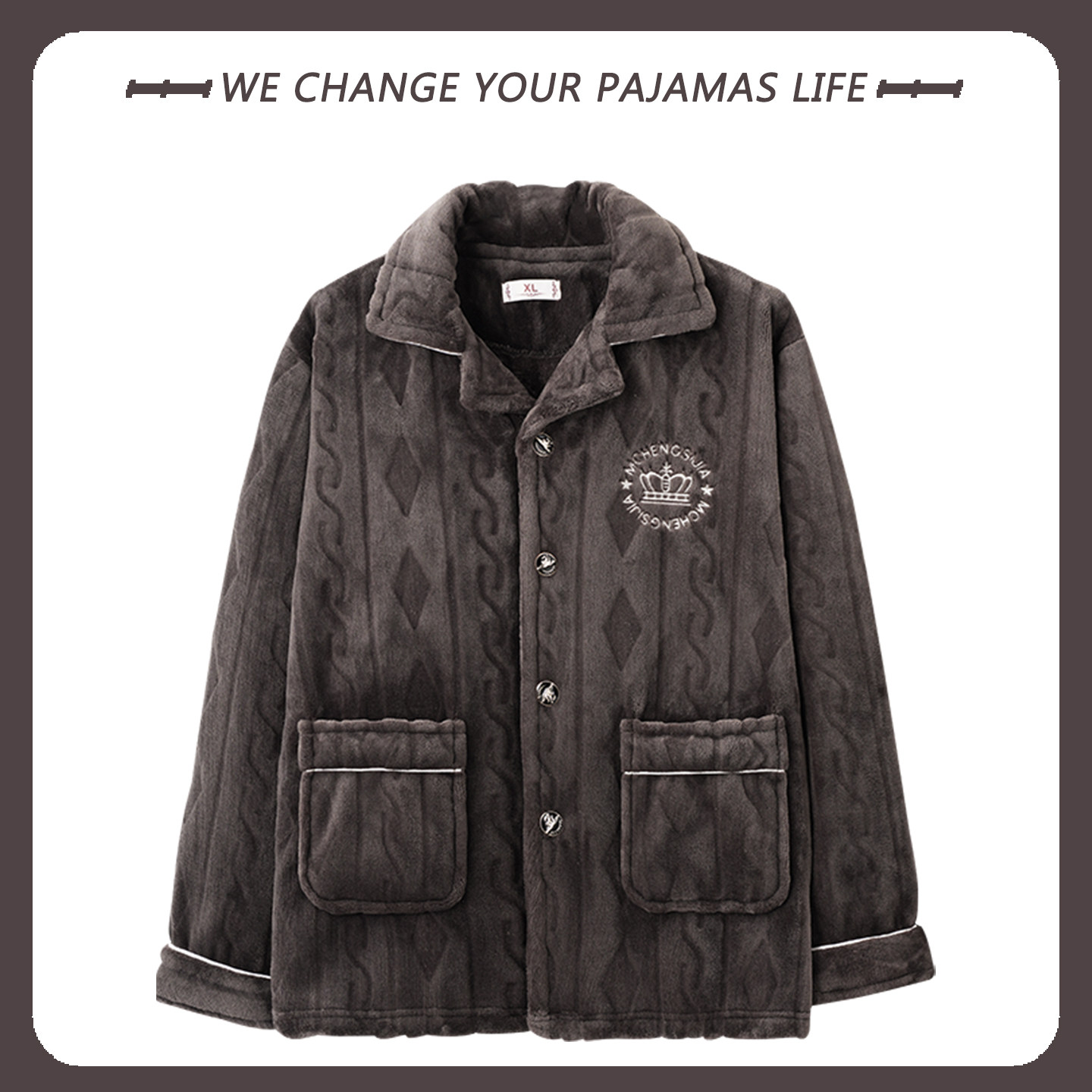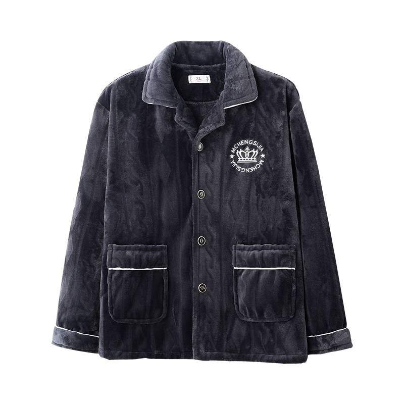 中年爸爸睡衣男士秋冬季珊瑚绒加厚开衫长袖单件可外穿家居上衣装