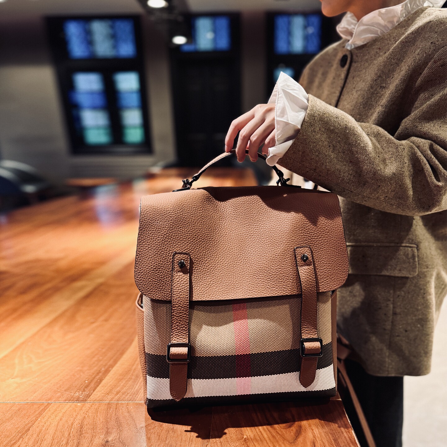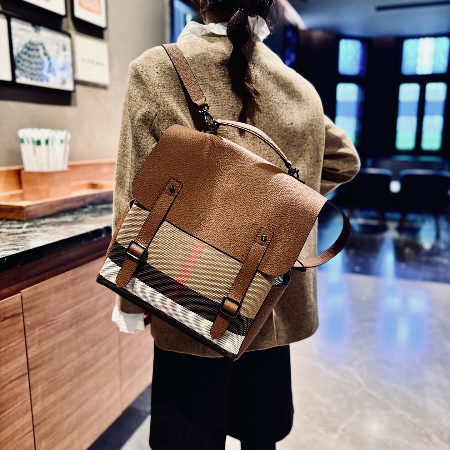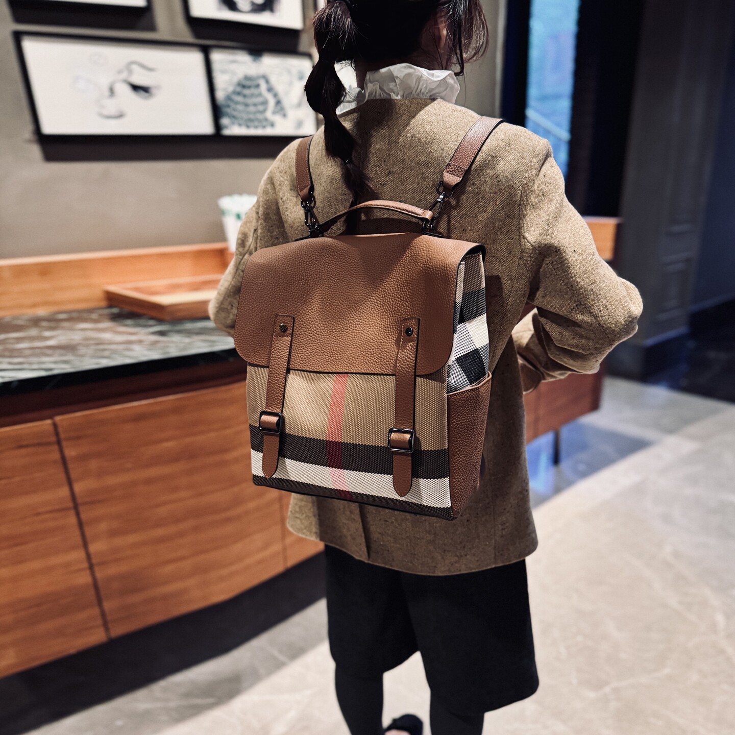 欧美时尚大容量旅行轻便双肩包2025新款真皮格子背包16寸电脑书包