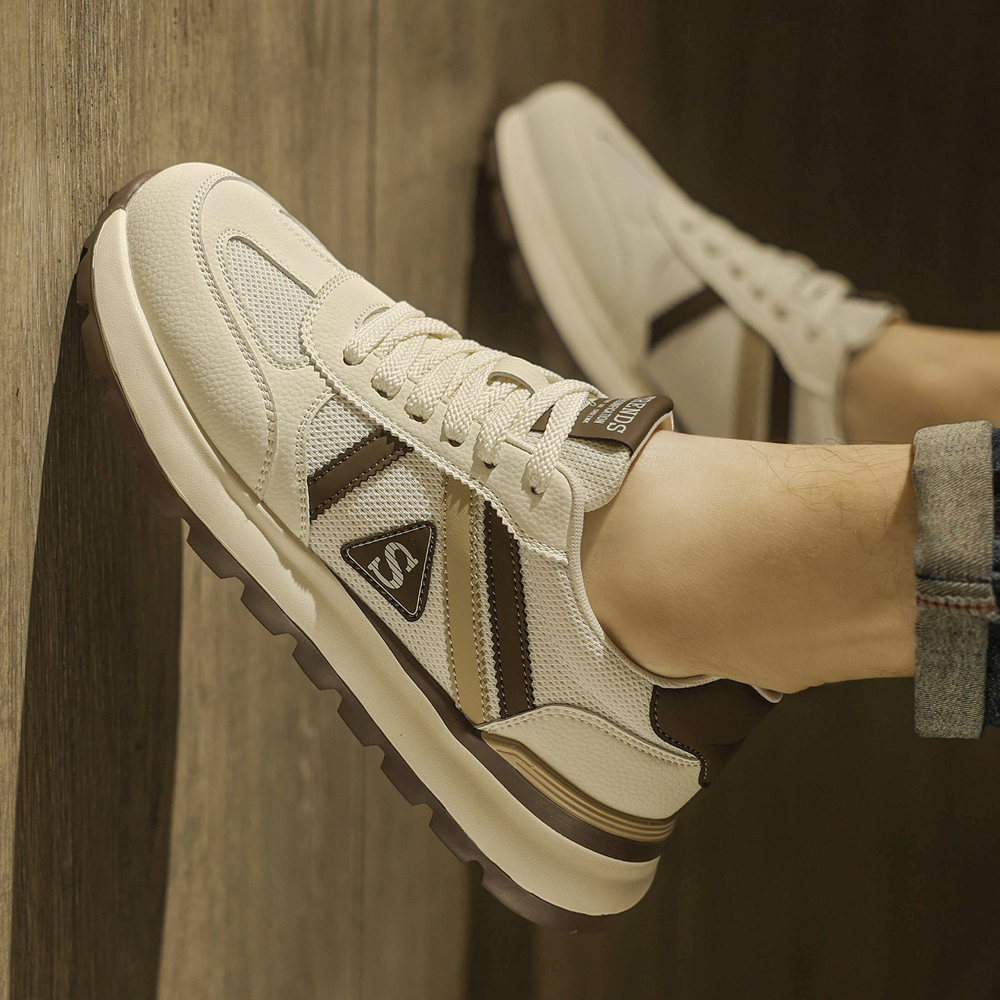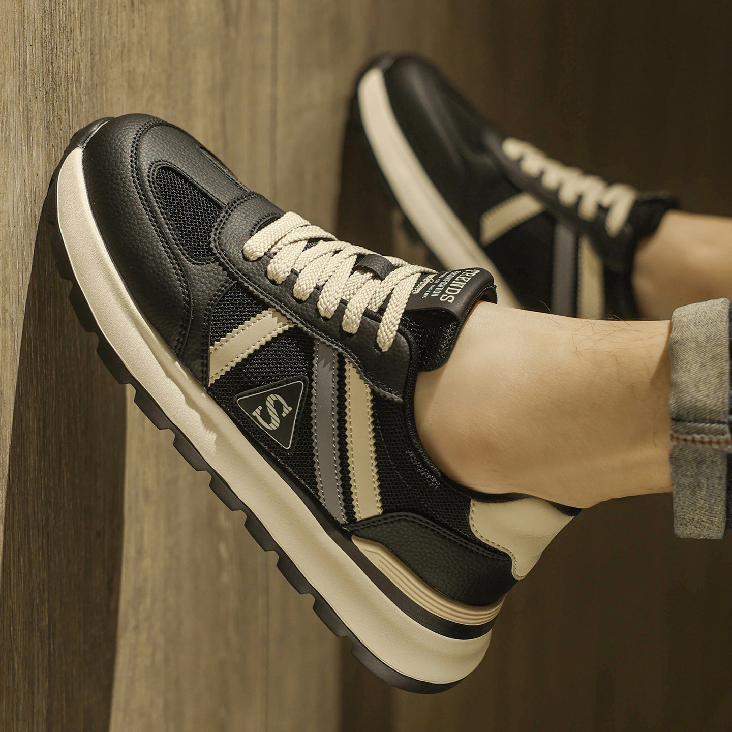 男鞋2026新款春季透气休闲运动德训鞋高级感百搭厚底增高老爹潮鞋