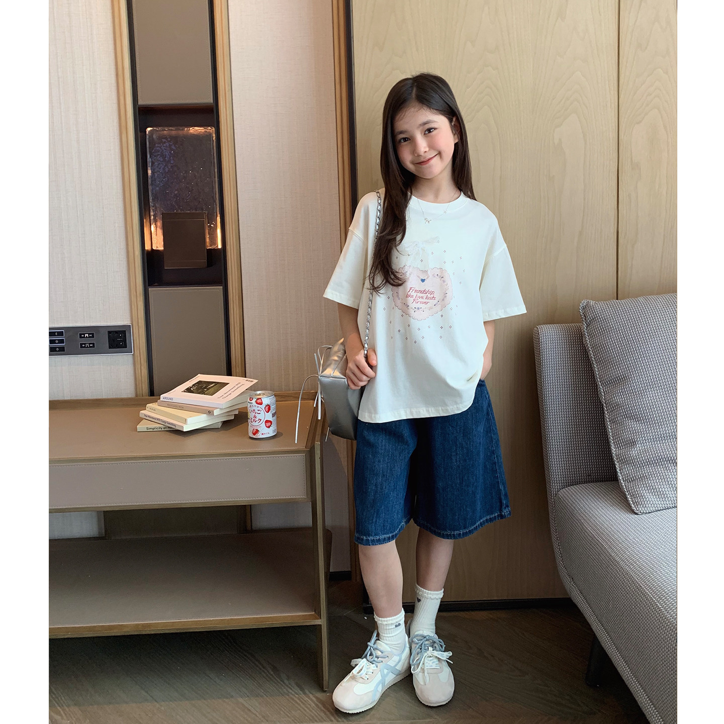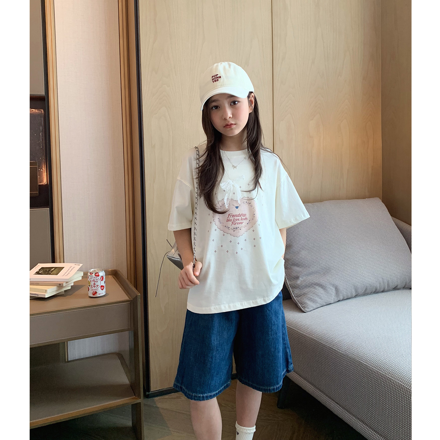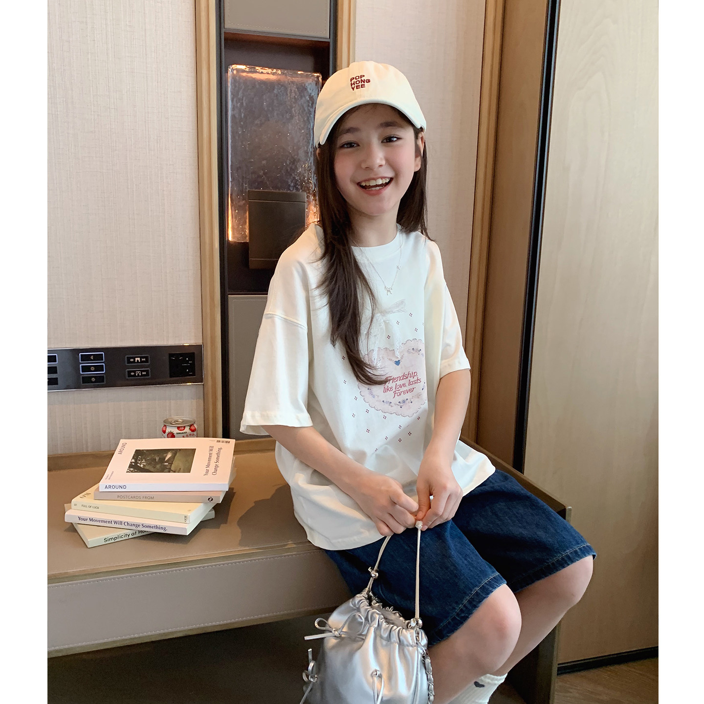 女大童韩版爱心短袖2026夏装新款少女宽松休闲透气T恤初中生薄棉T