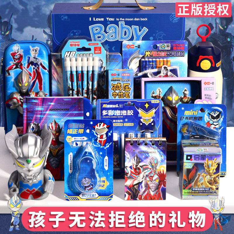 奥特曼文具礼盒套装大礼包小学生学习用品一二年级男孩生日礼物伴手礼幼儿园儿童奖励节日奖品盲盒开学礼物