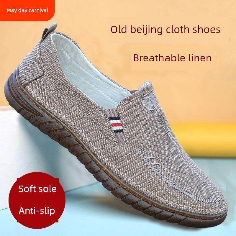 男士耐磨防臭工作布鞋帆布鞋夏季老北京男款板鞋子透气一脚蹬休闲