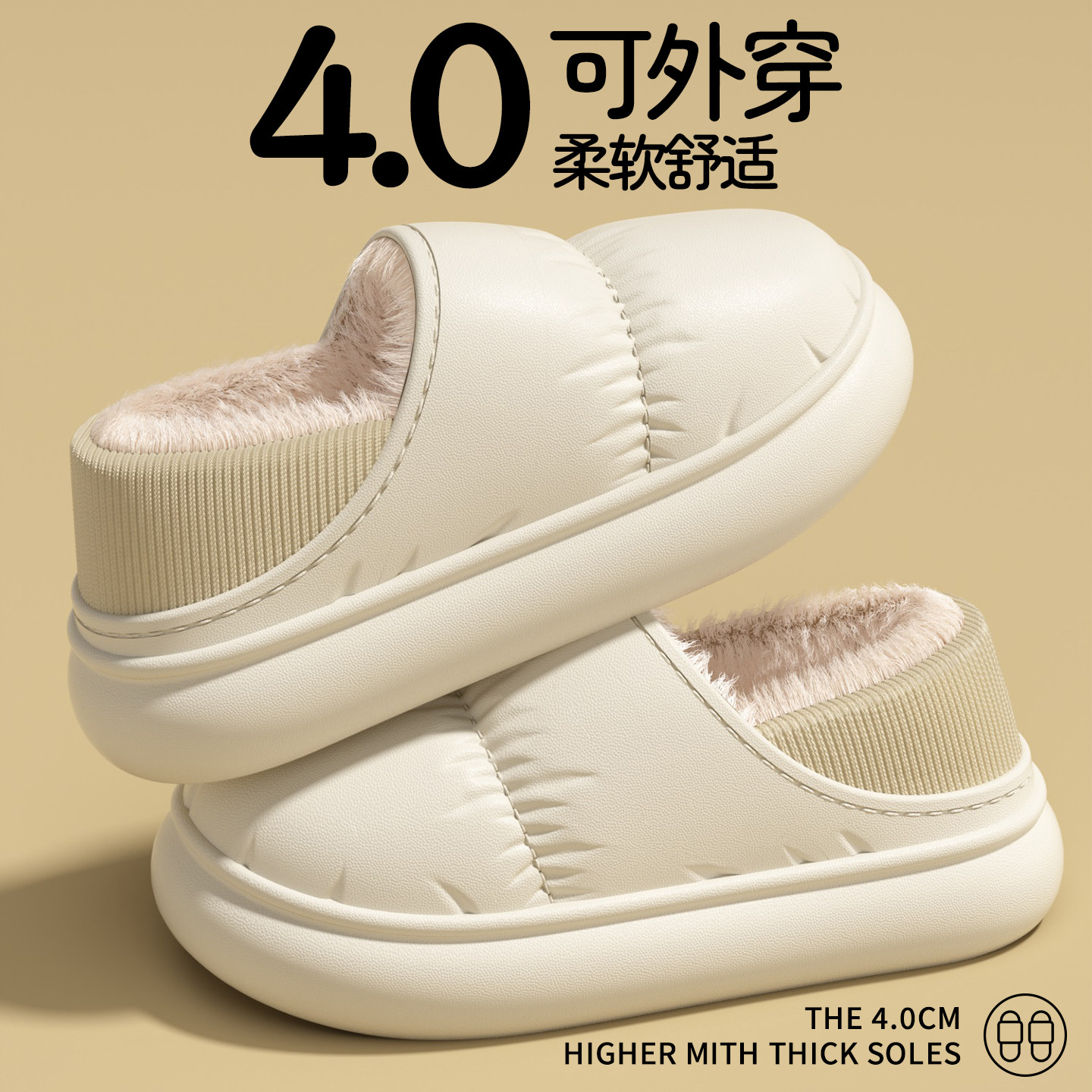 防水棉鞋女款冬季外穿保暖防寒加绒厚底情侣居家防滑包跟棉拖鞋男