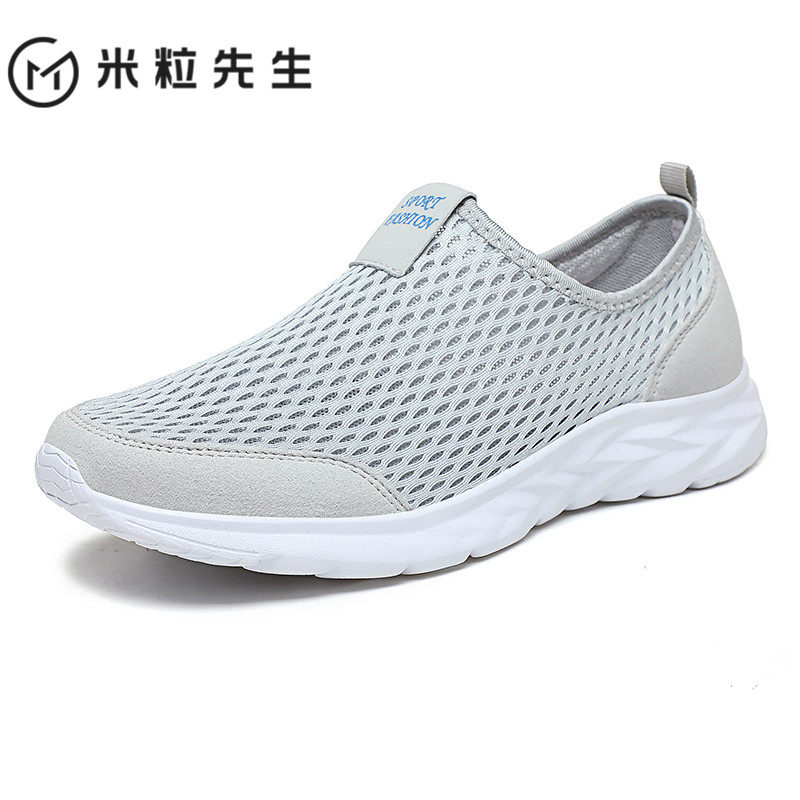 夏季透气网面运动男鞋春秋款一脚蹬懒人网眼网鞋老北京布鞋薄款鞋