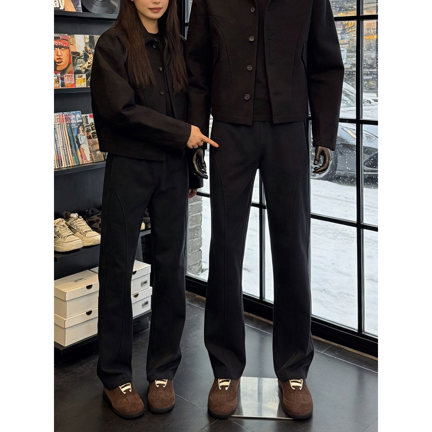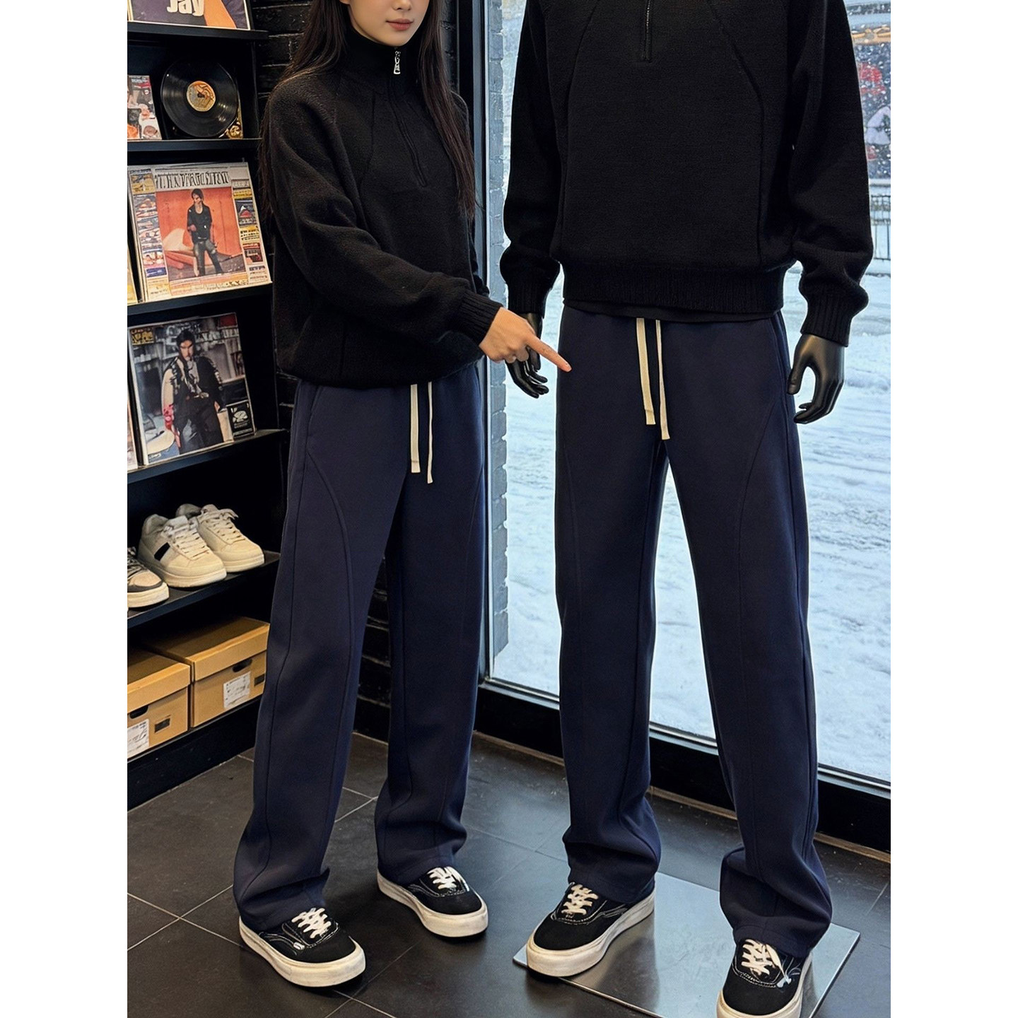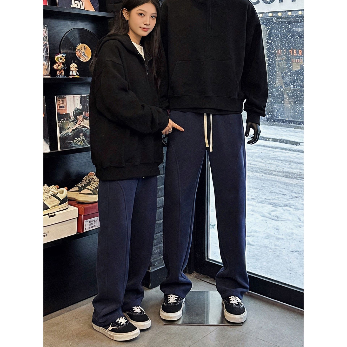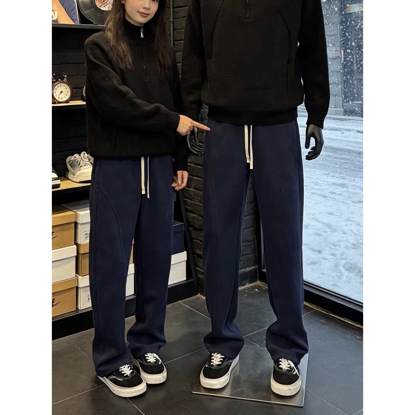 311线报网描述:黑色美式重磅弯刀卫裤男款秋冬青少年酷帅裤