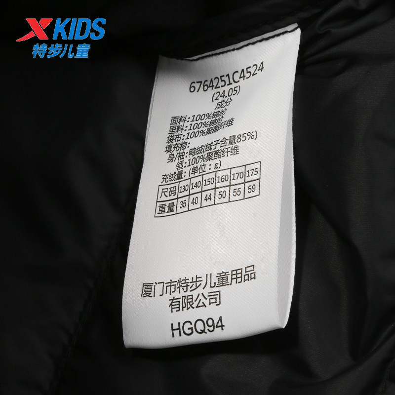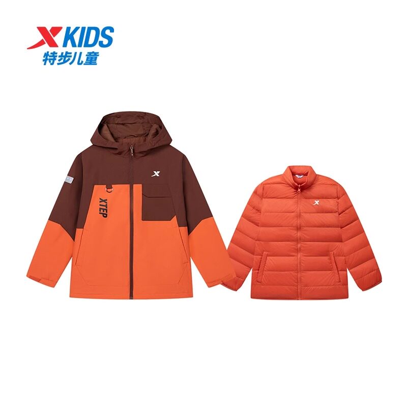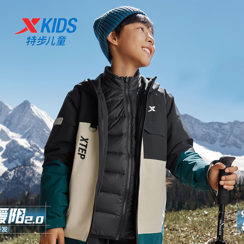 特步儿童男童羽绒服三合一冲锋衣2024冬季中大童外套6764251C4524