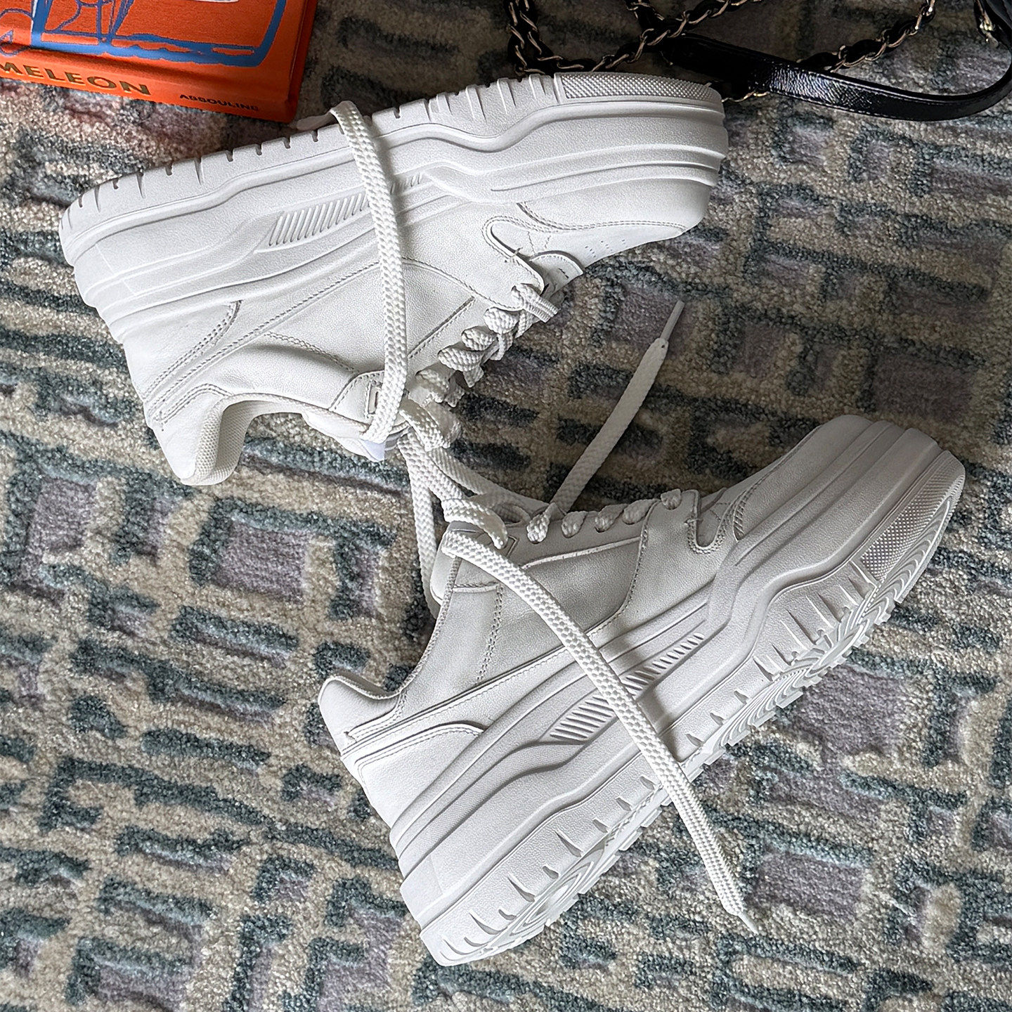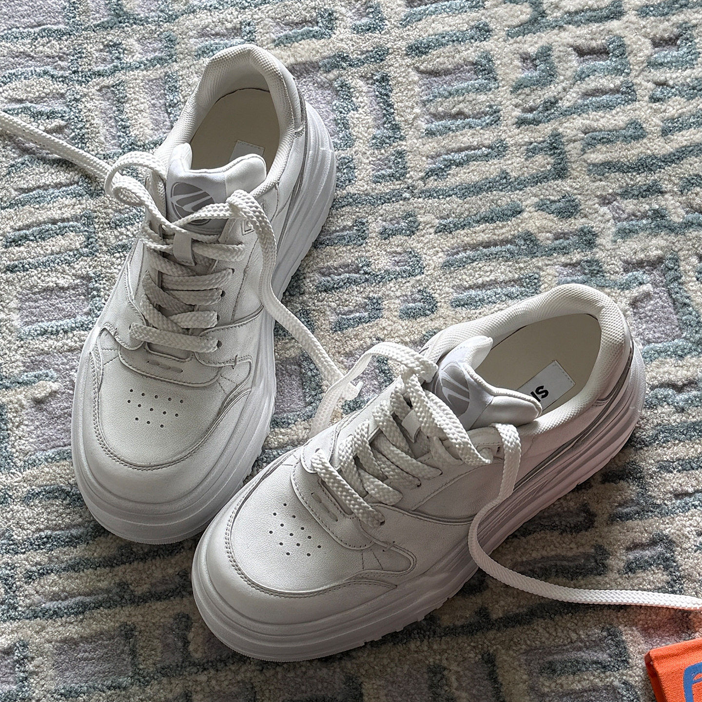 诗歌兰新款系带做旧小白鞋女鞋厚底增高休闲板鞋百搭松糕跟学生鞋