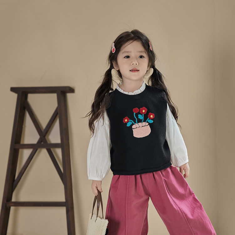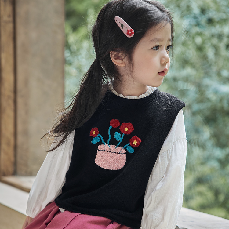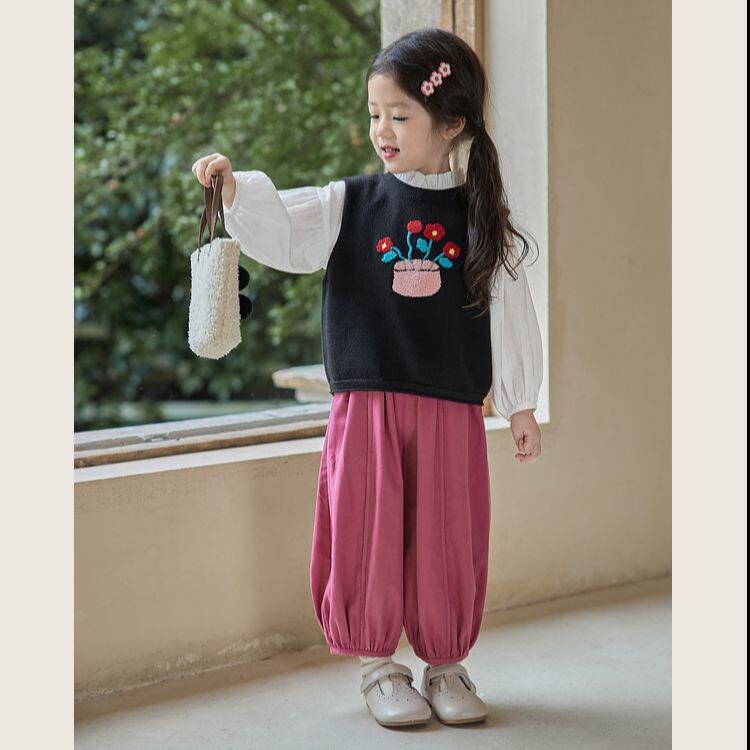 女童黑色洋气针织马甲2026春秋新款韩版甜美可爱女孩外穿马夹坎肩