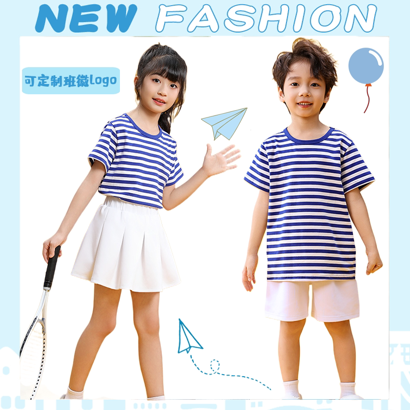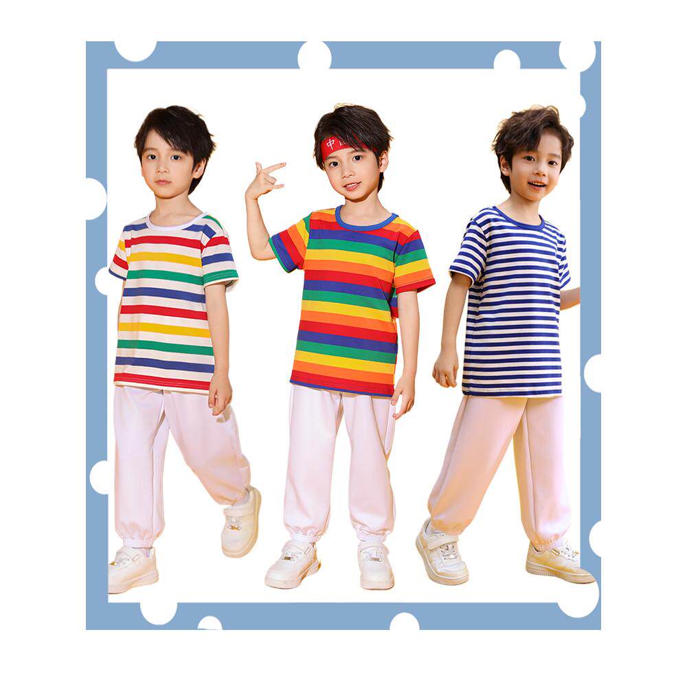 儿童彩虹条纹短袖T恤幼儿园毕业班服小学生运动会六一表演服套装