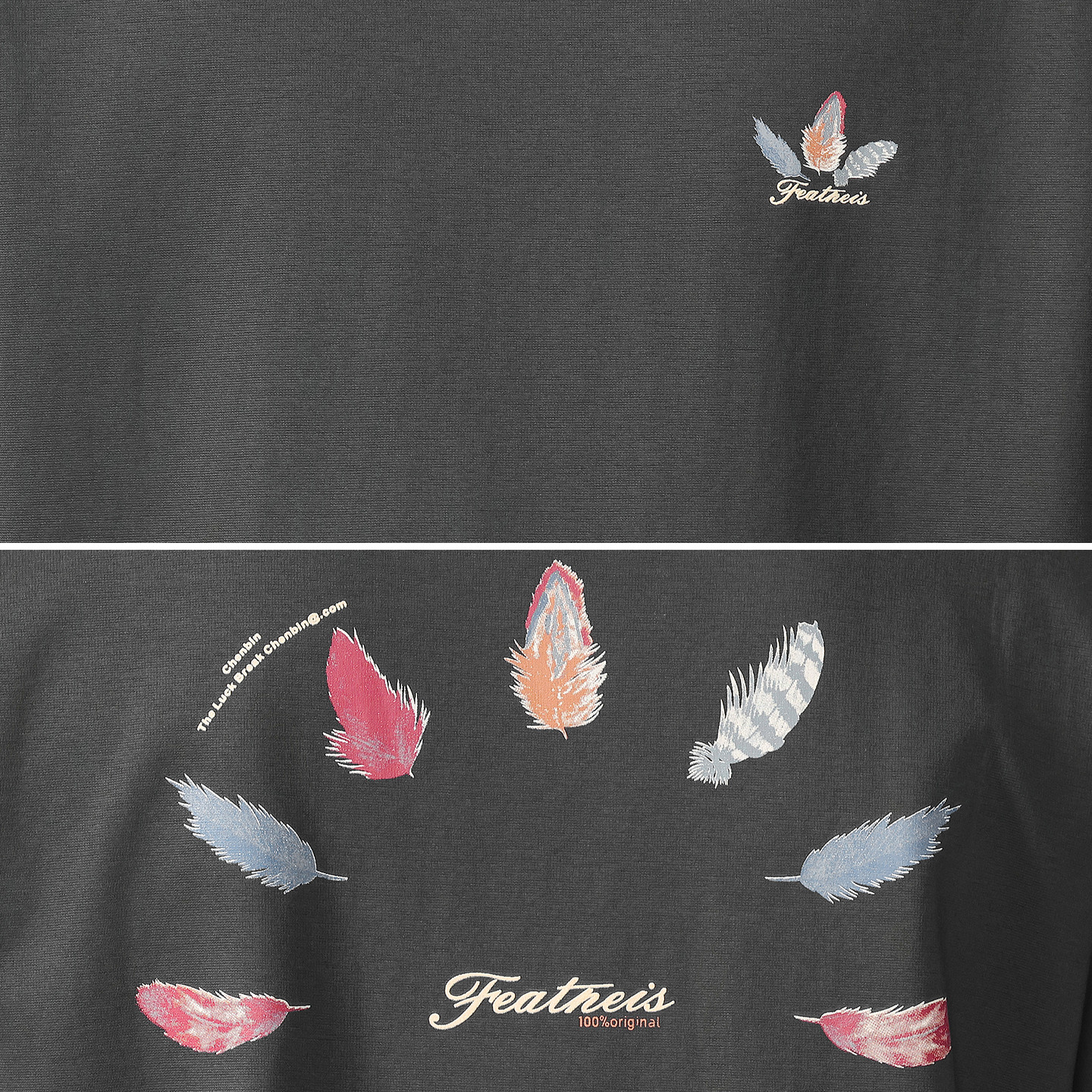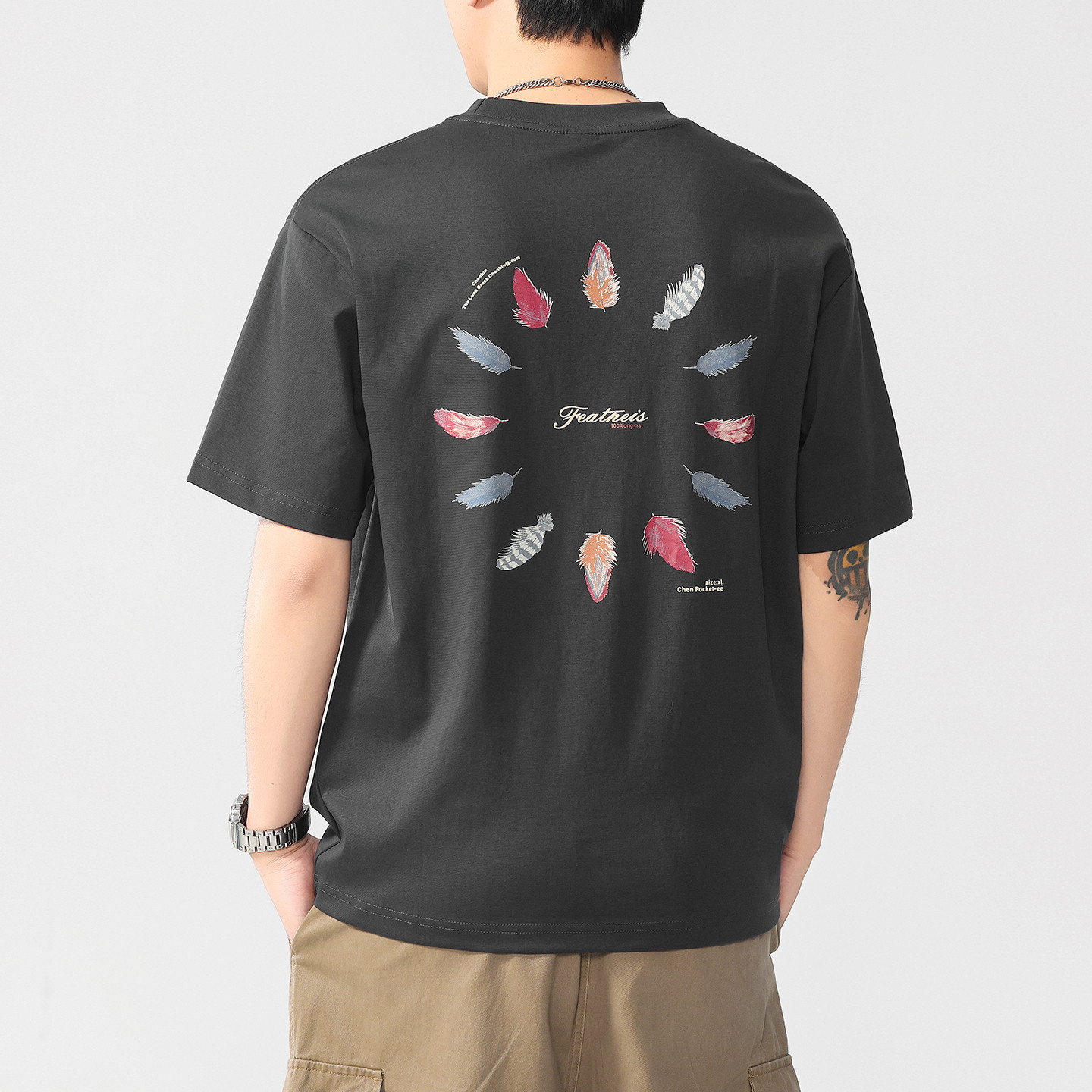 311线报网描述:宽松版型 羽毛印花 圆领设计 潮流百搭