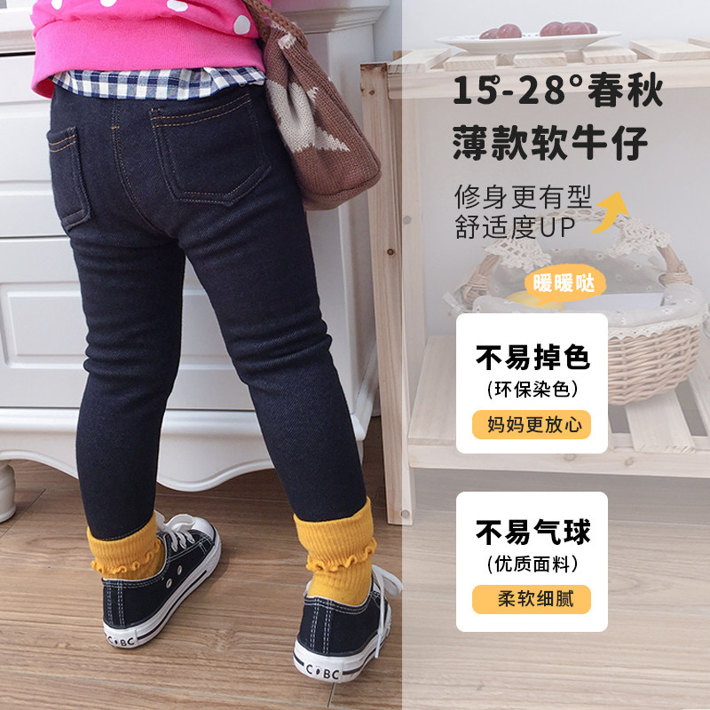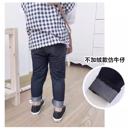 男女童软仿牛仔裤子春秋冬季外穿宝宝儿童装加薄绒打底裤2025新款
