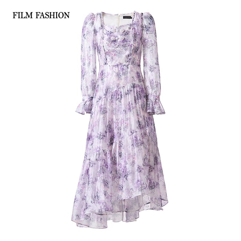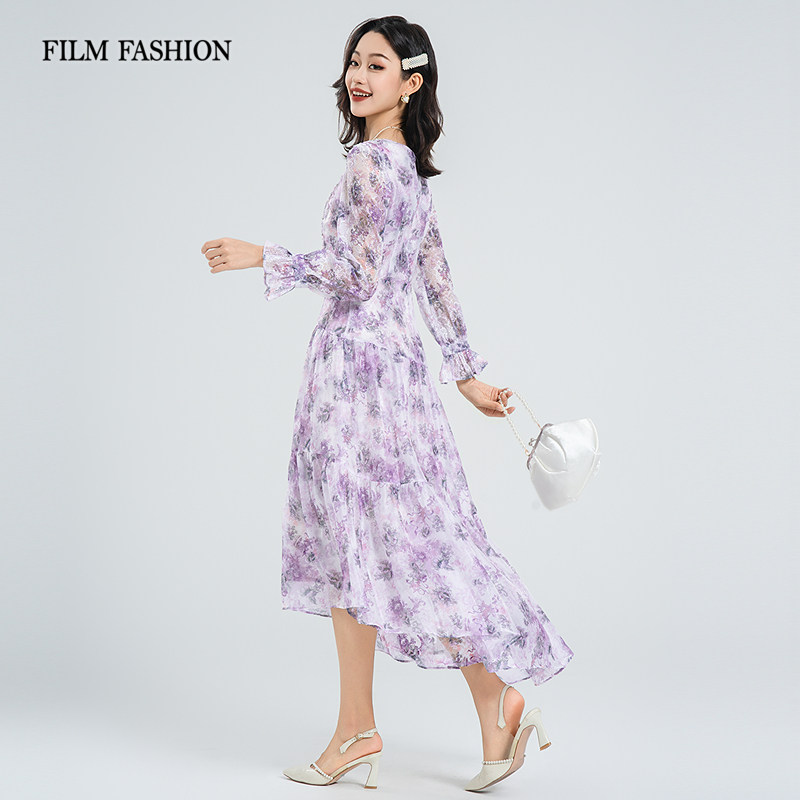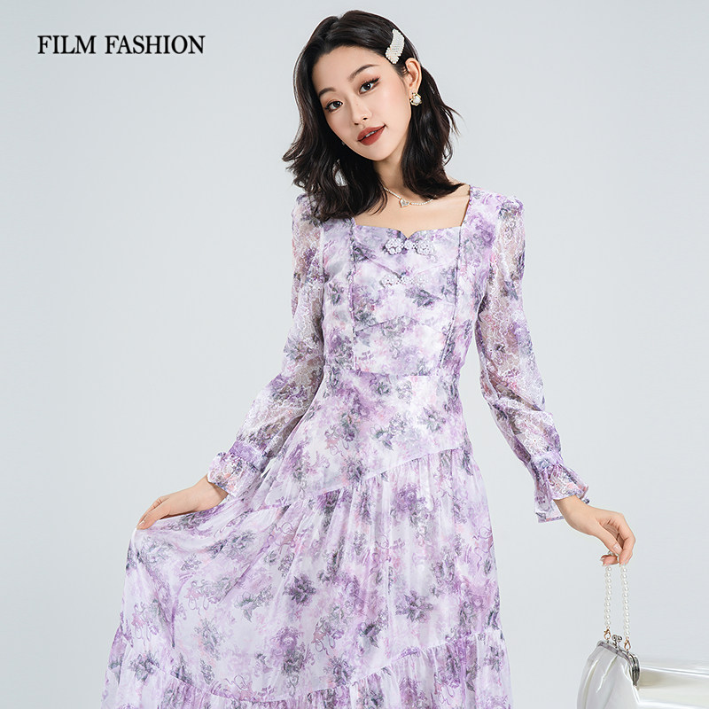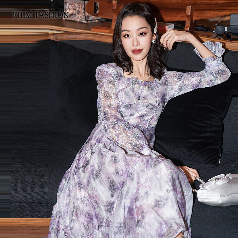 一电影一时装春季新款连衣裙长裙长袖法式优雅度假风气质气质女