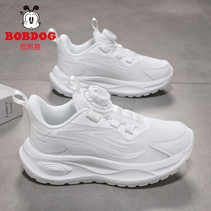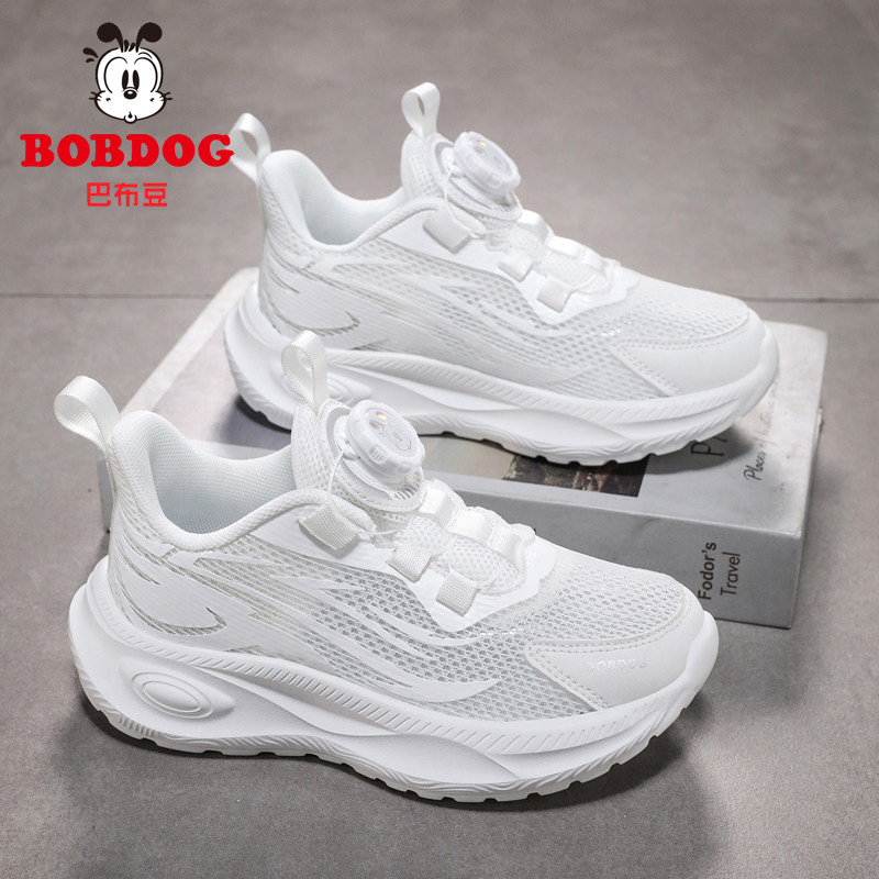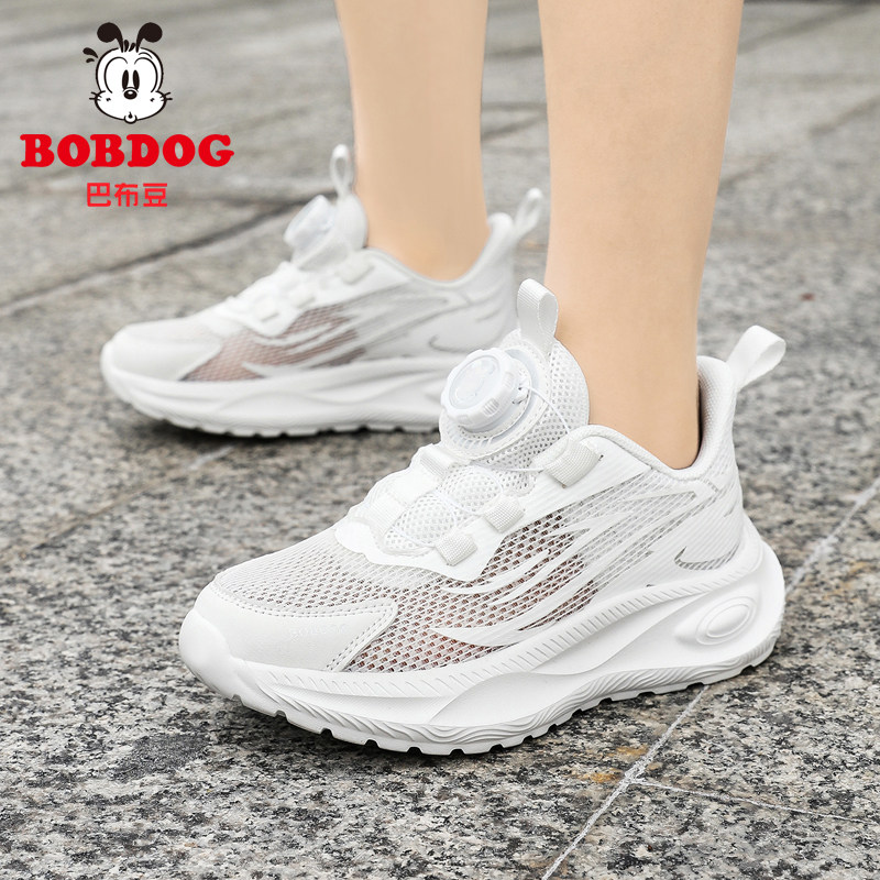 巴布豆儿童小白鞋男童白色运动鞋2026夏薄款网面透气学生女童鞋子