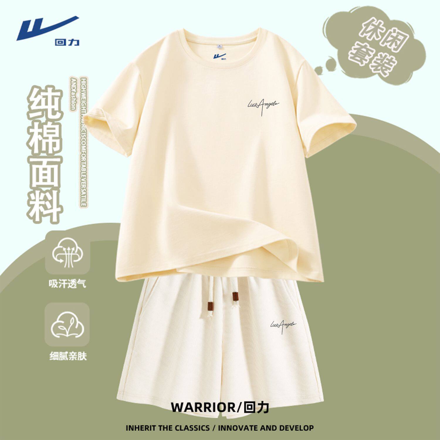 回力运动套装女2026新款夏季女士羽毛球健身服大码跑步休闲短裤DD