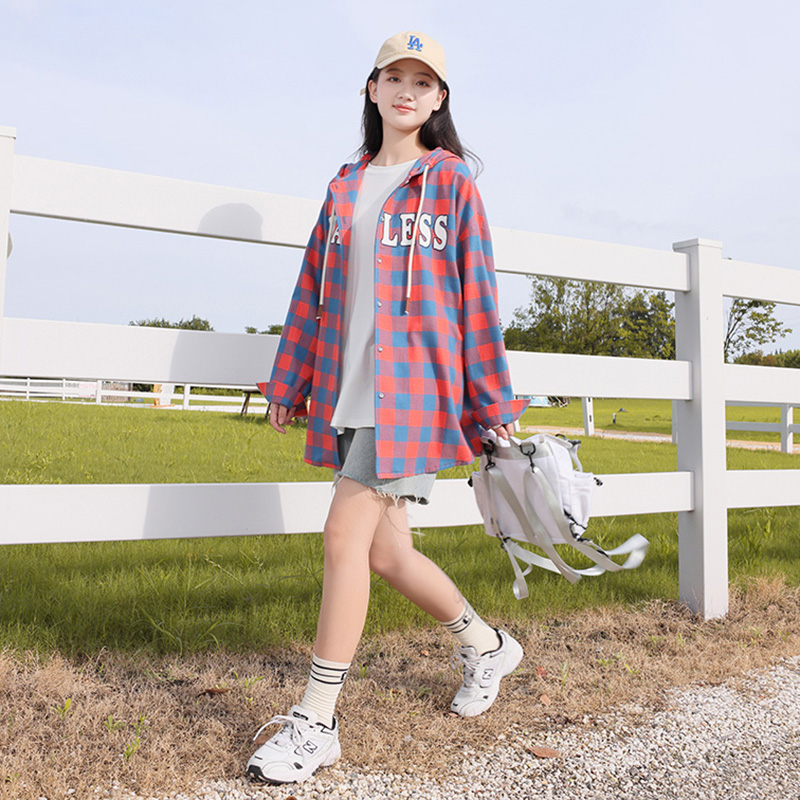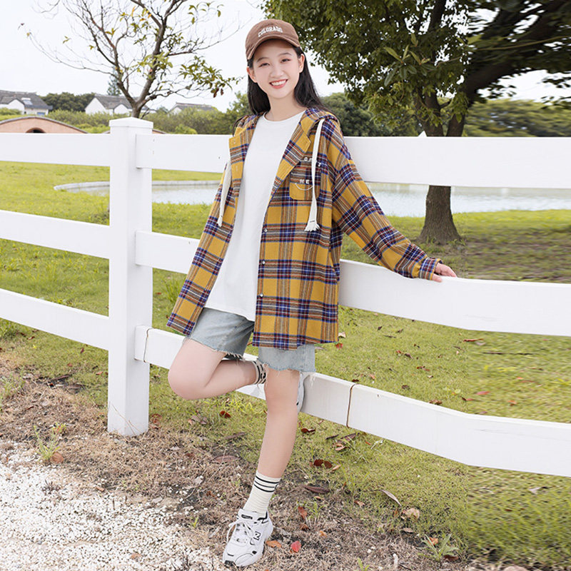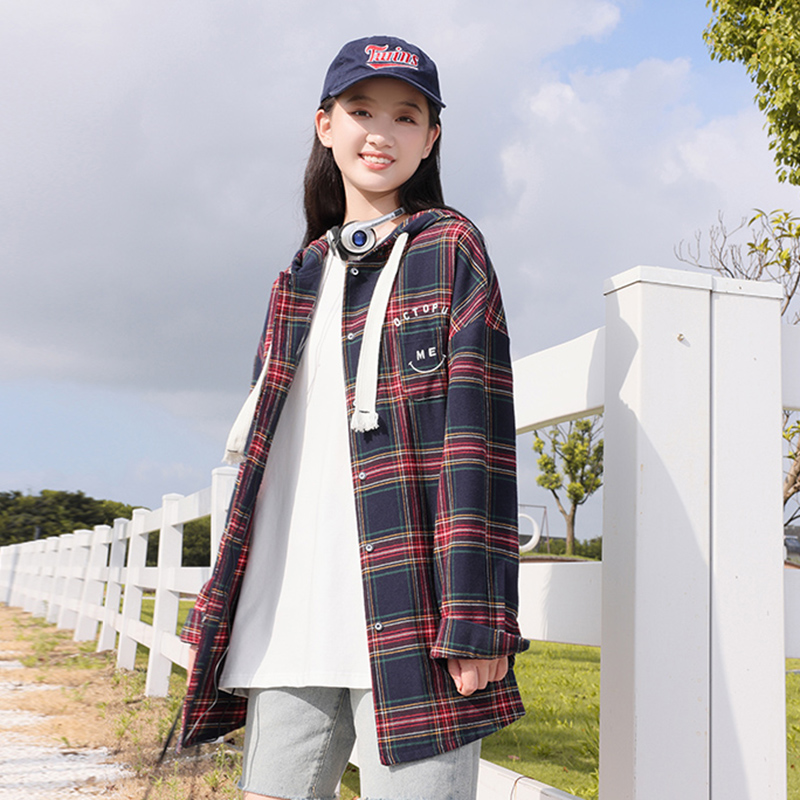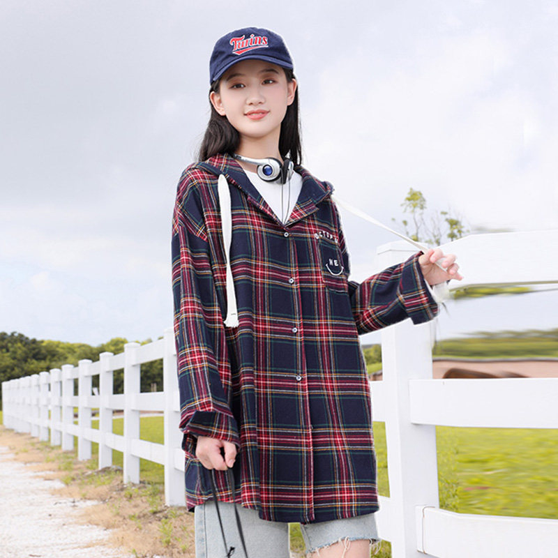 初中学生格子衬衫女春装13岁外套长袖高中生春季新款复古上衣宽松