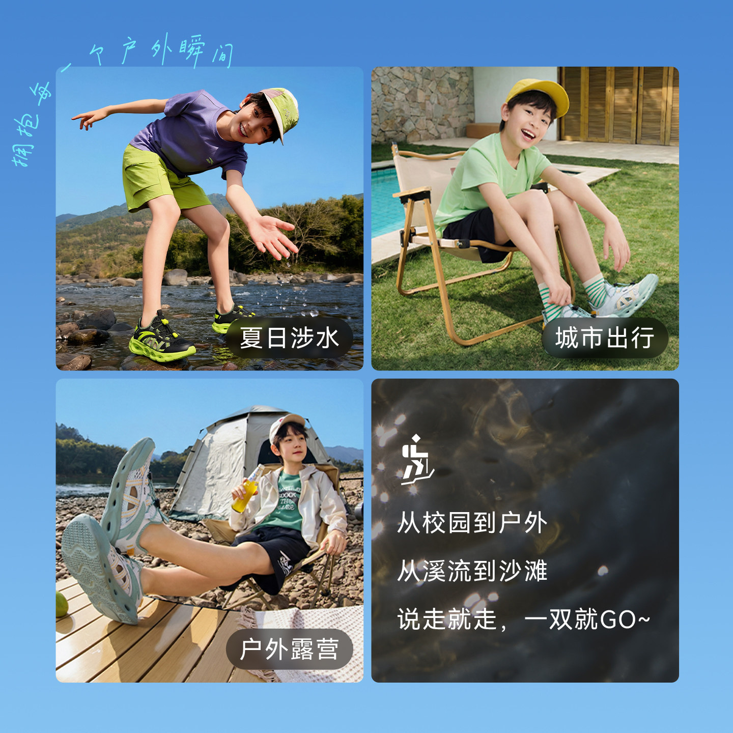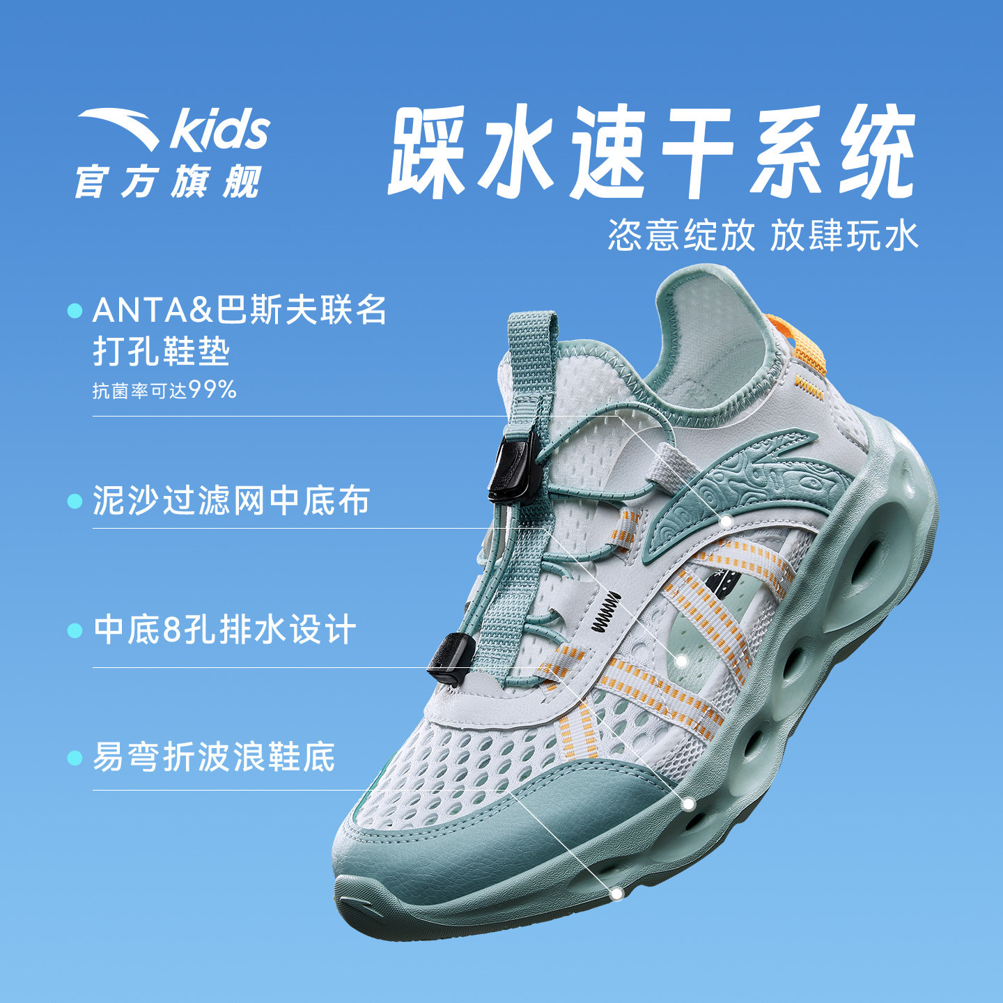 安踏儿童凉鞋男女大童网面透气低帮框子鞋2026夏季新款抽绳童鞋