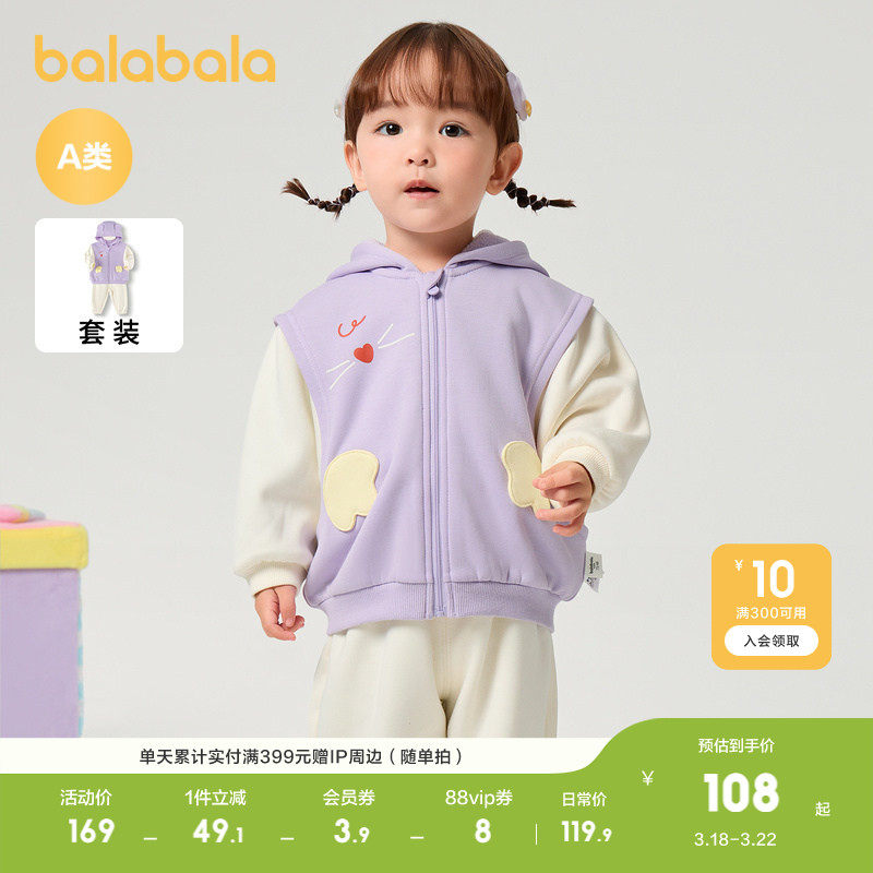巴拉巴拉童装宝宝运动套装儿童衣服女童男童连帽加绒春装纯棉柔软