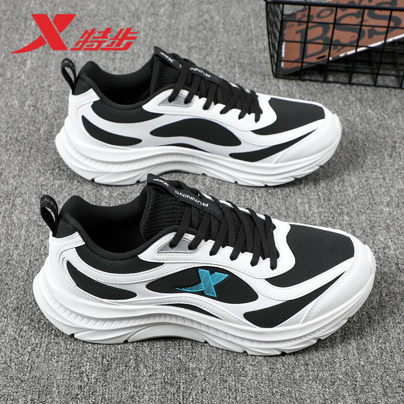 特步男鞋皮面防水跑步鞋春季2026新款休闲鞋子正品黑色运动鞋男款