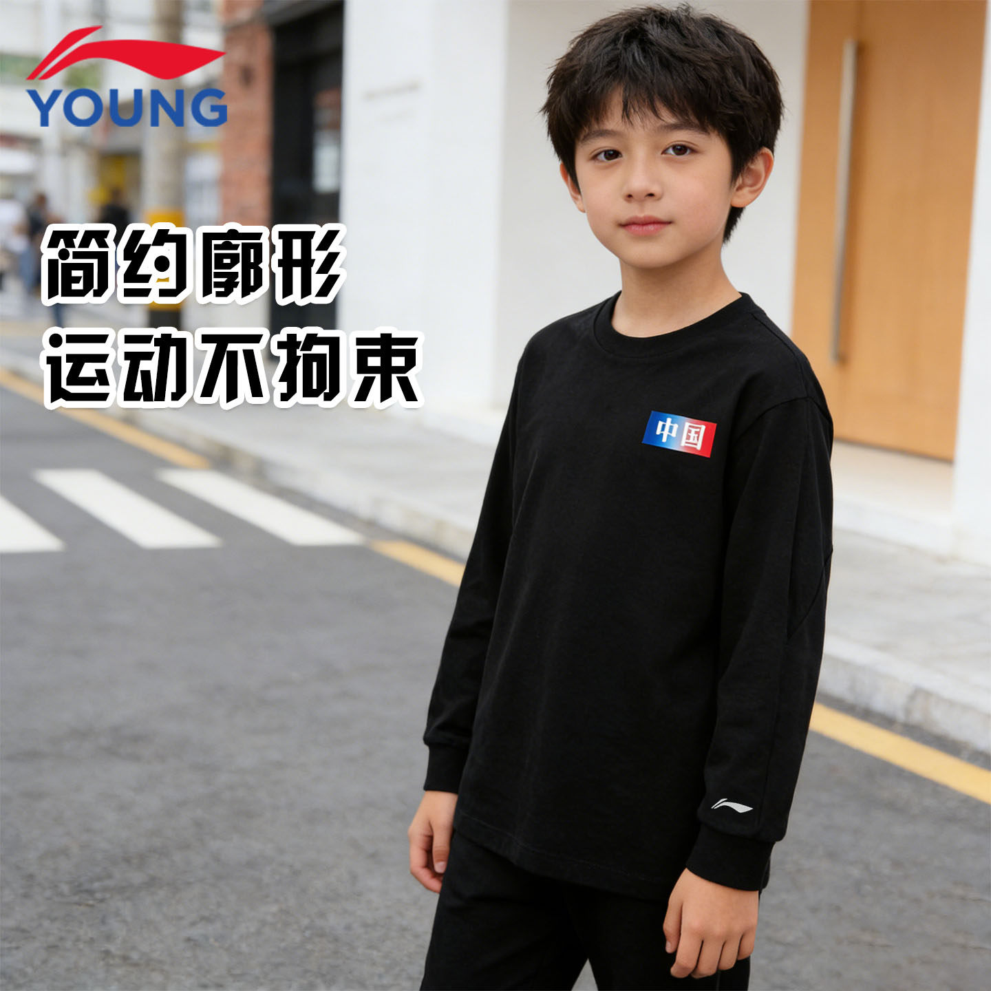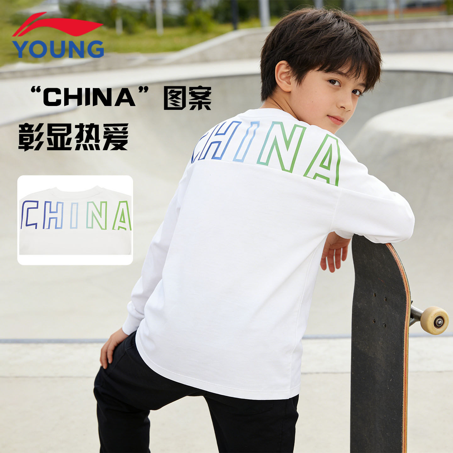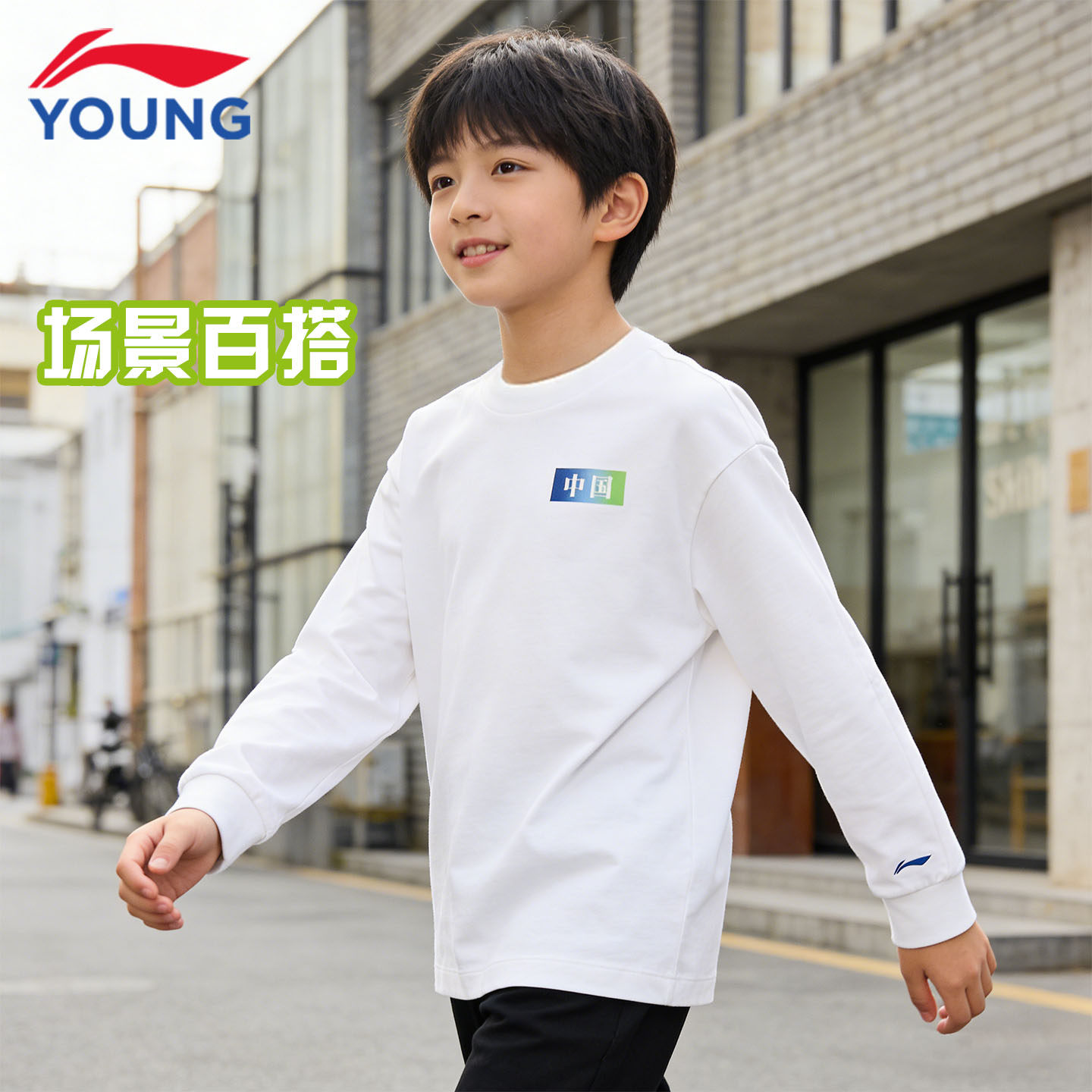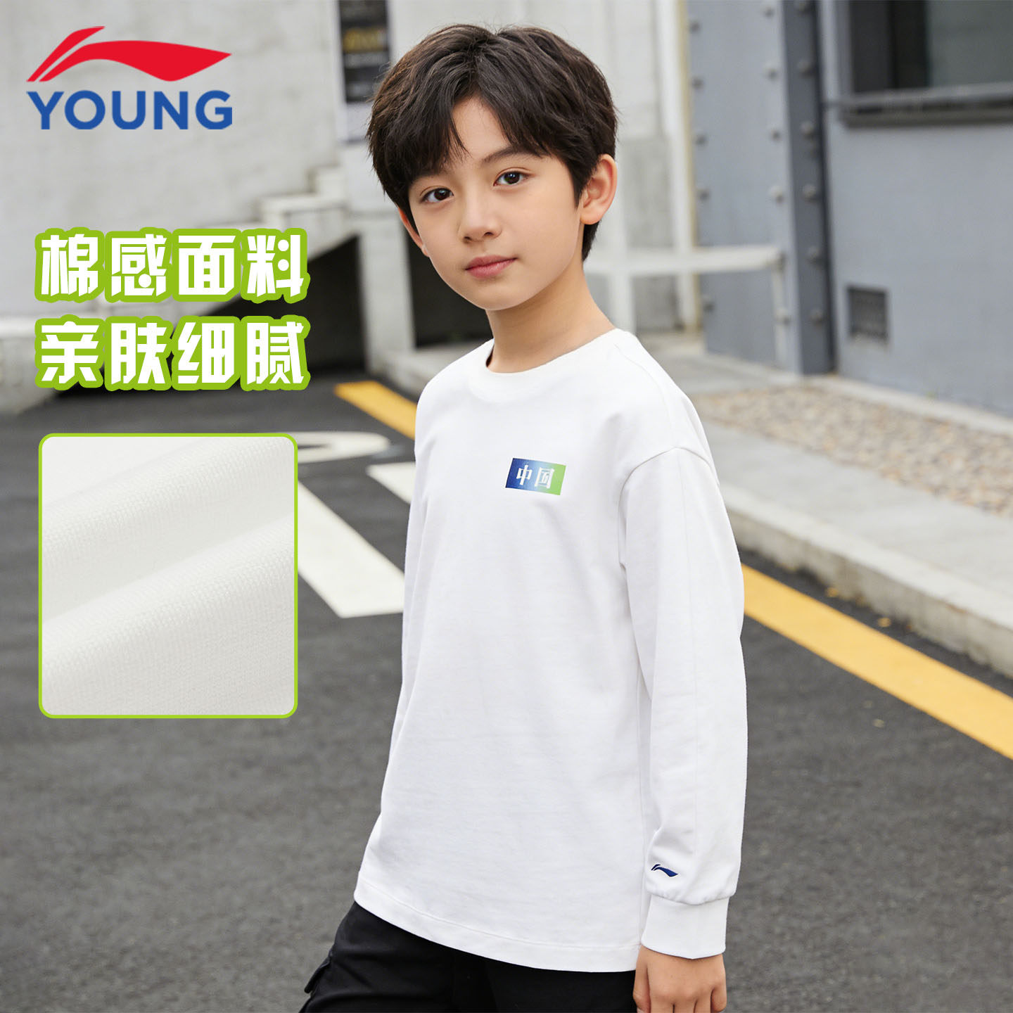 李宁儿童长袖T恤26新款男女大童纯棉柔软舒适宽松青少年运动上衣