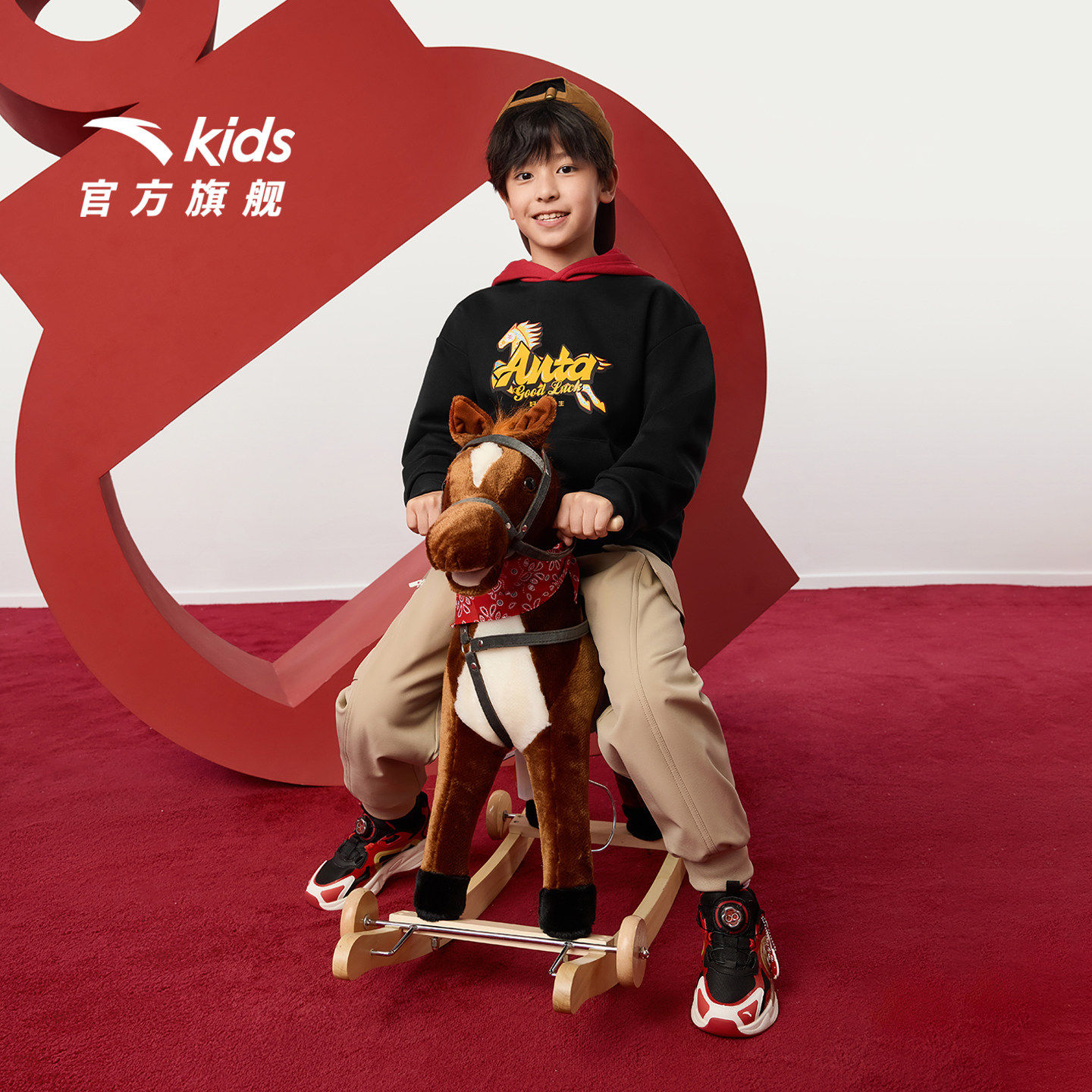 星迹丨安踏儿童运动鞋男童鞋2026款红色犟弹中大童旋钮童鞋