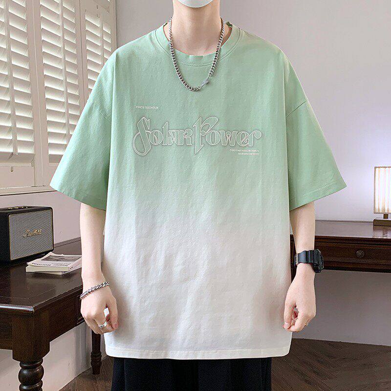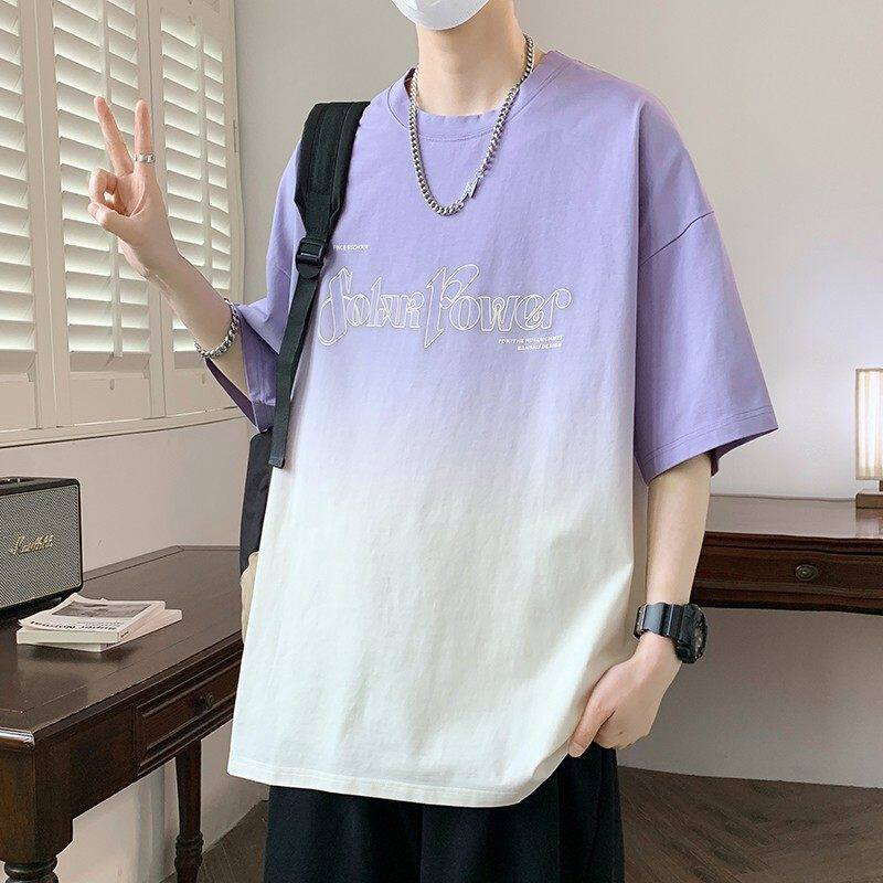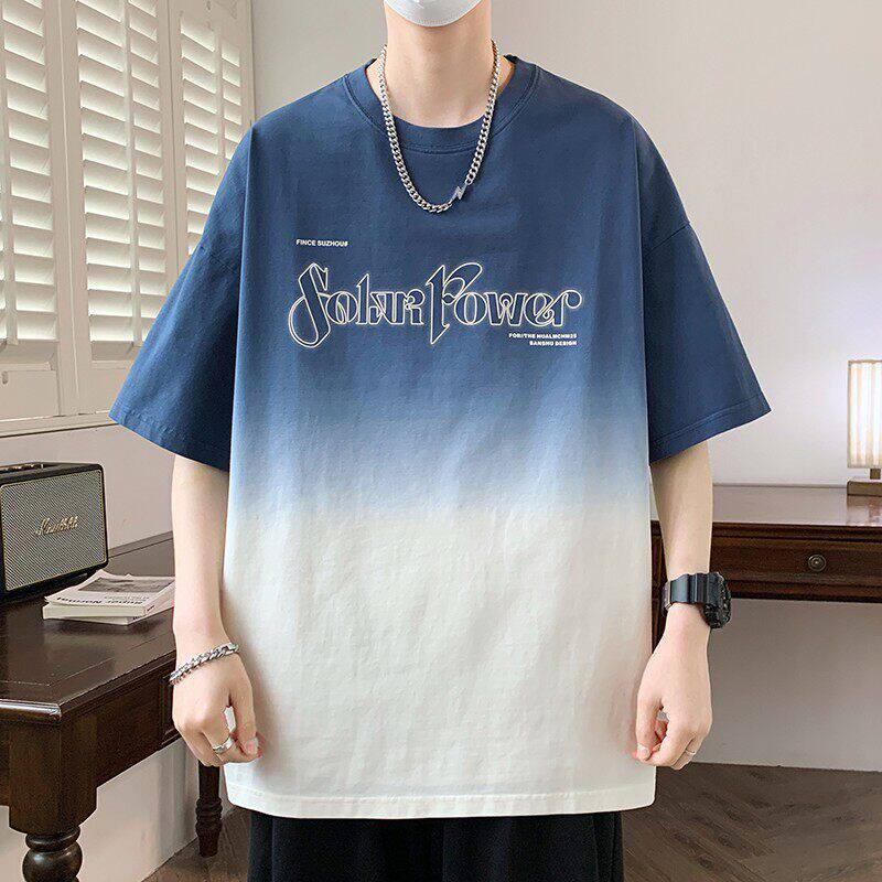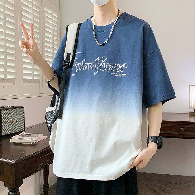 2026夏季重磅新款青少年渐变色圆领短袖潮牌宽松韩版时尚男生T恤