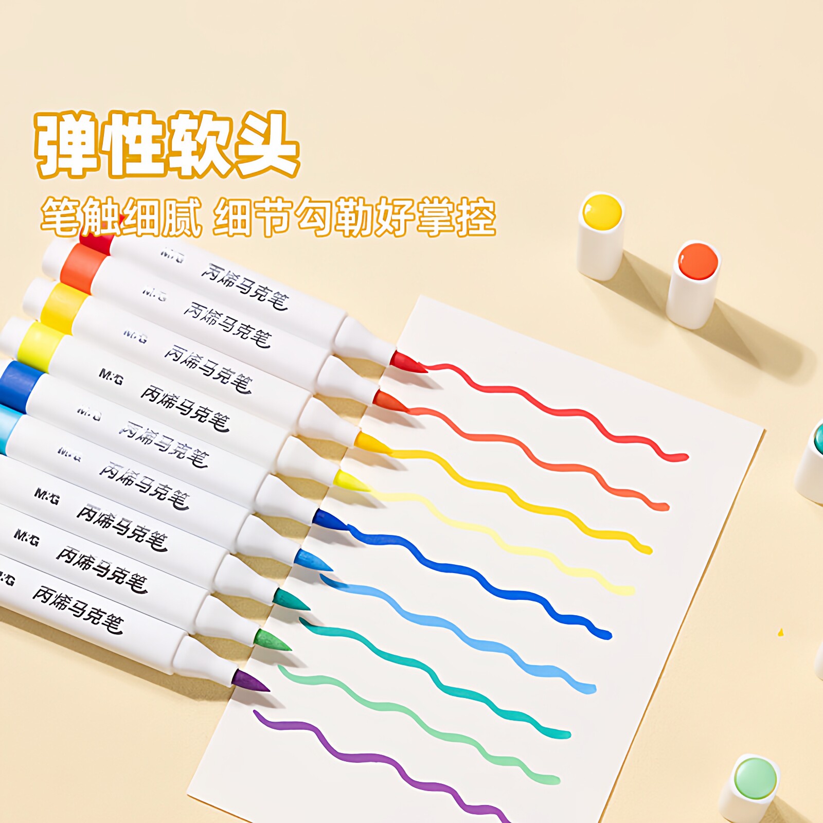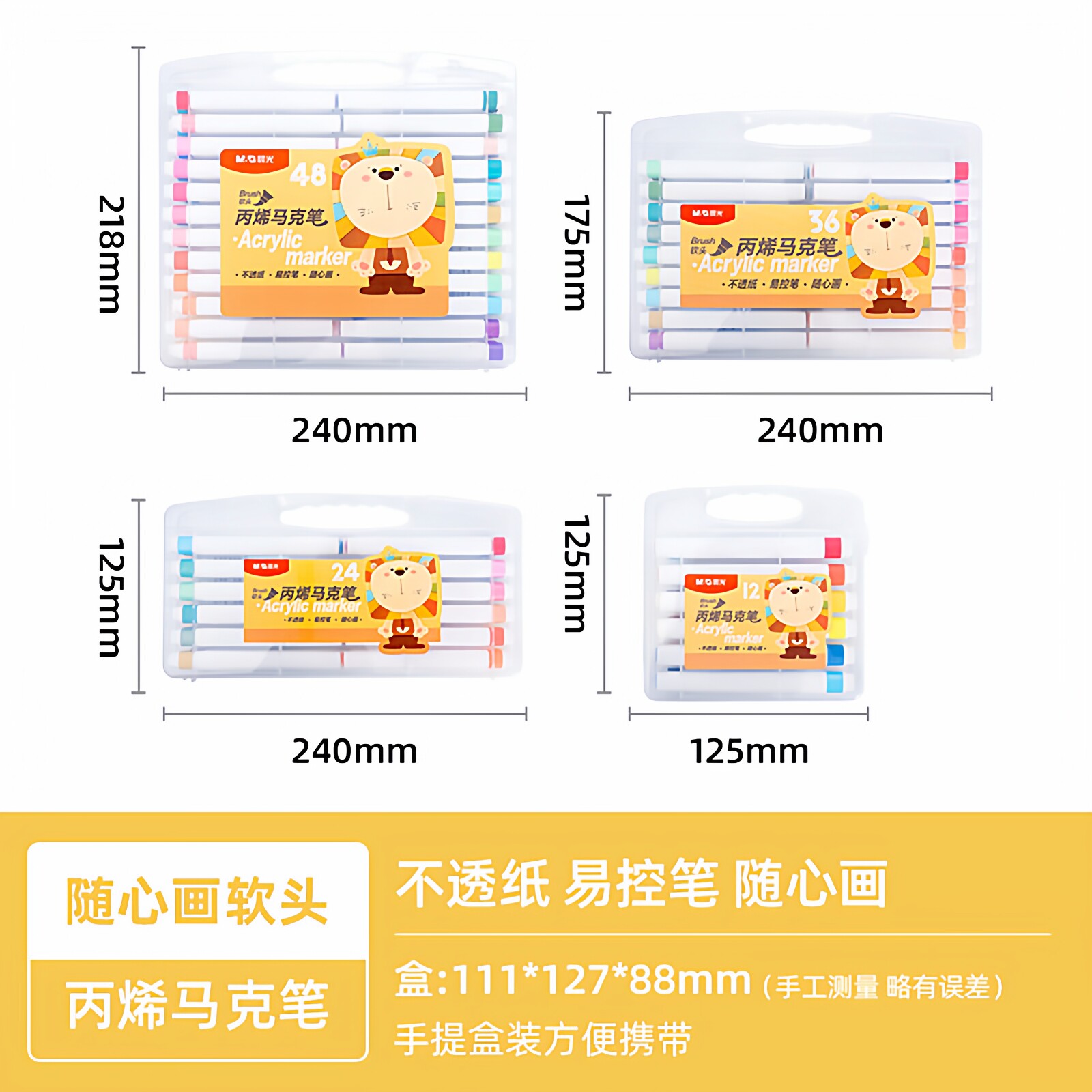 晨光丙烯马克笔官方旗舰店小学生美术专用软头不透色可叠色24色36色48色12色儿童学生水性彩色画笔