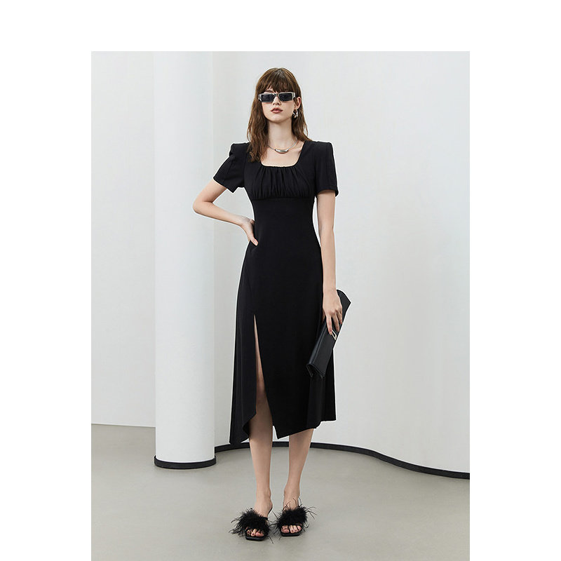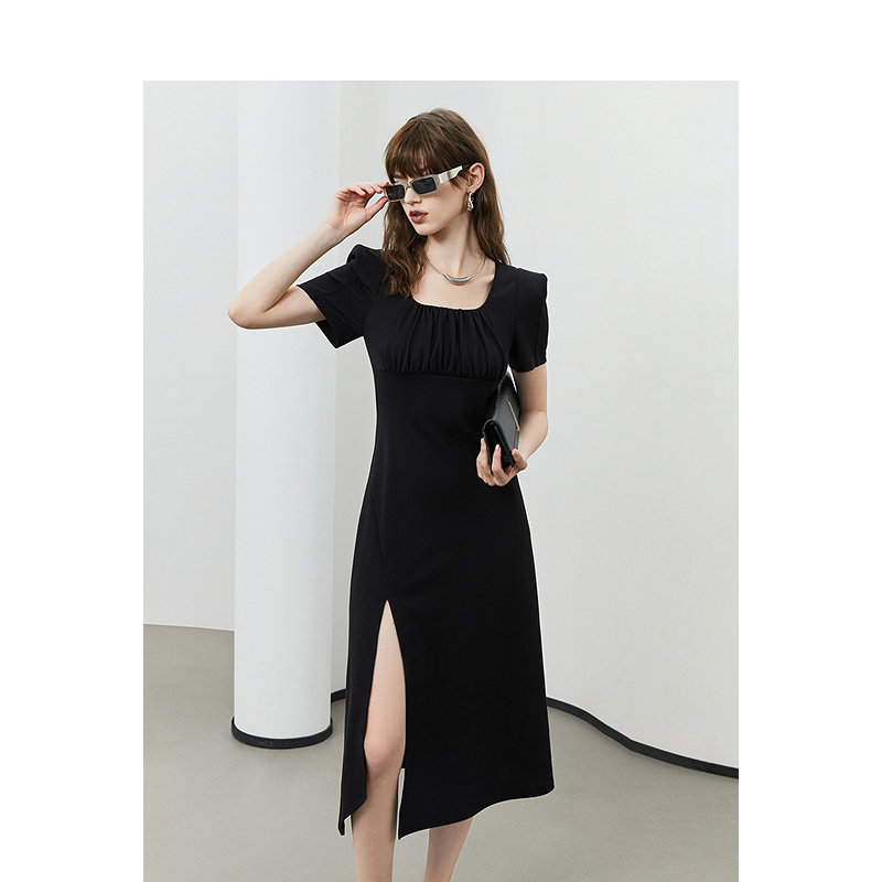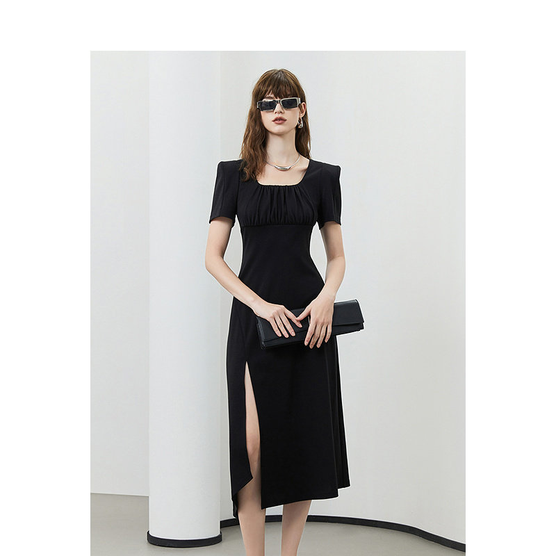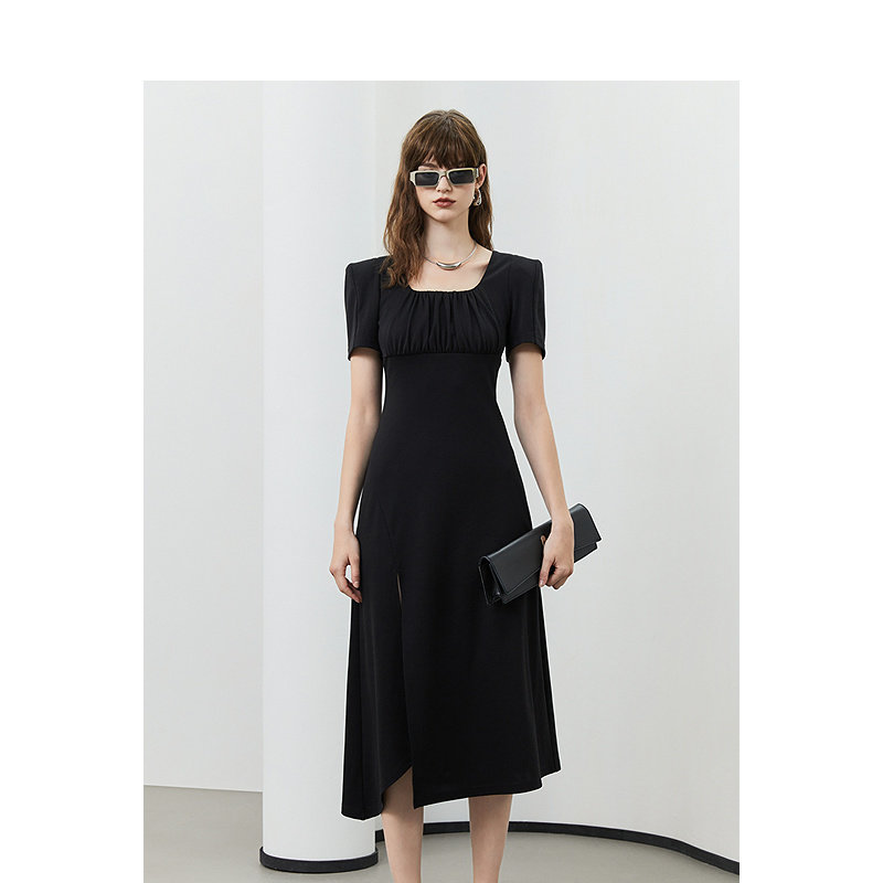 KBNE黑色短袖字裙夏季新品连衣裙正式场合轻奢气质高级感中长裙