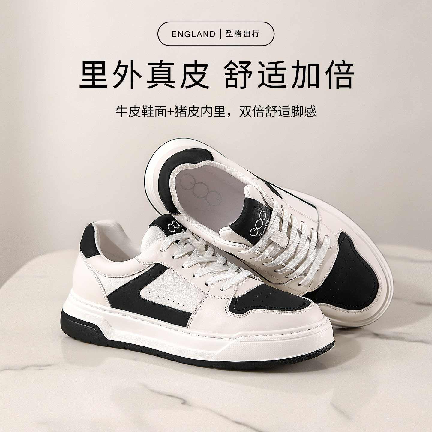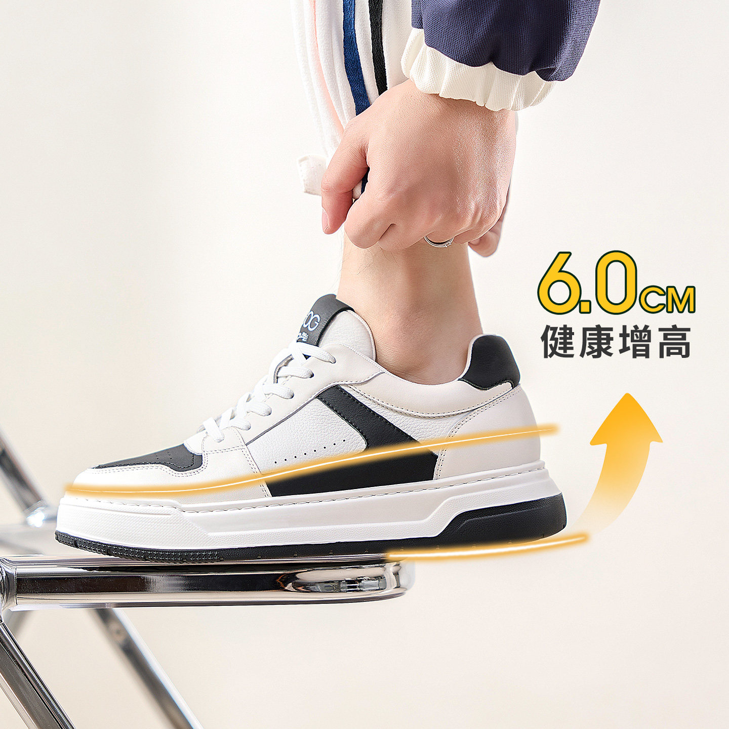 高哥增高板鞋男款低帮休闲鞋子头层牛皮男鞋春季厚底运动鞋内增高