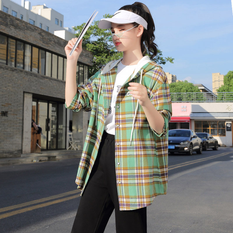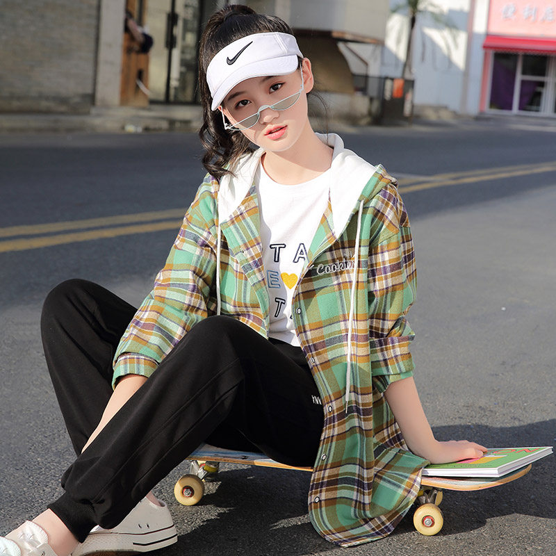 初中学生格子衬衫春装外套女长袖上衣高中生2026春季新款宽松韩版