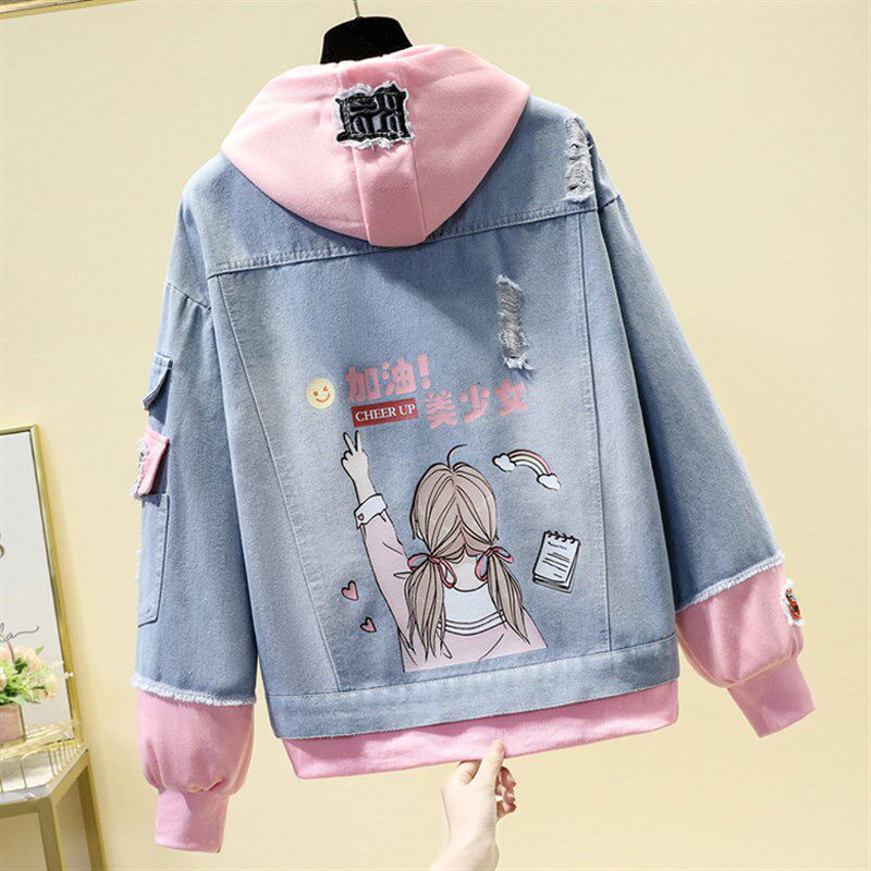 少女春装外套上衣韩版宽松百搭休闲可爱初中学生大童洋气牛仔夹克